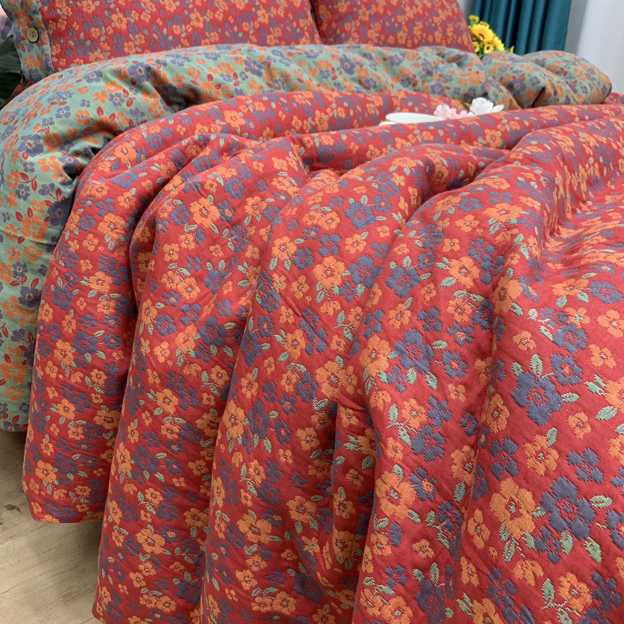 (总)鲁爱家纺供货 2025新款全棉色织提花秋冬被,玫瑰庄园-豆沙,醉云间-咖,醉云间-兰,醉云间-绿,玫瑰庄园-灰