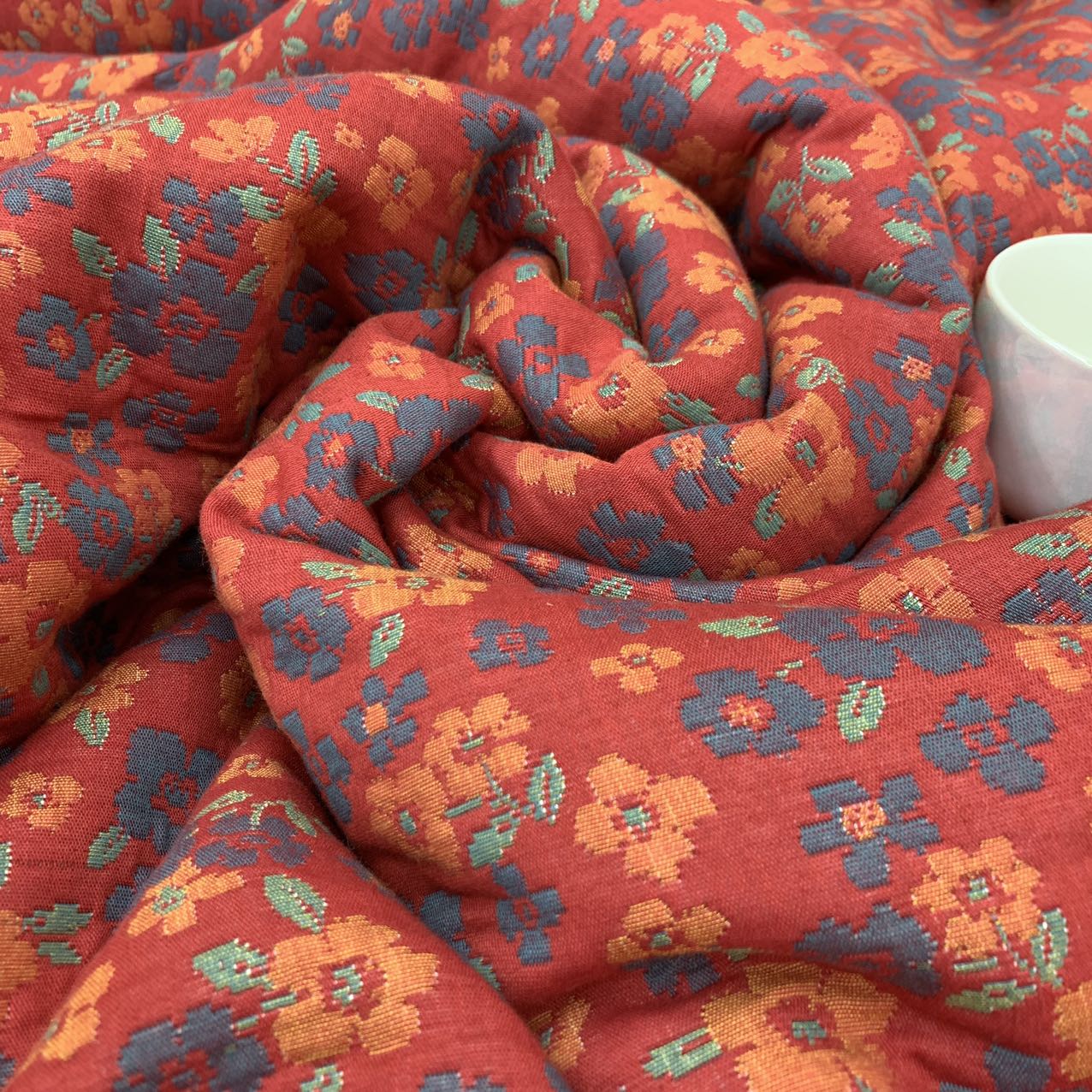 (总)鲁爱家纺供货 2025新款全棉色织提花羊绒蛋白秋冬被,曼妙花园-灰,曼妙花园-豆沙,百福-红,龙凤呈祥-红