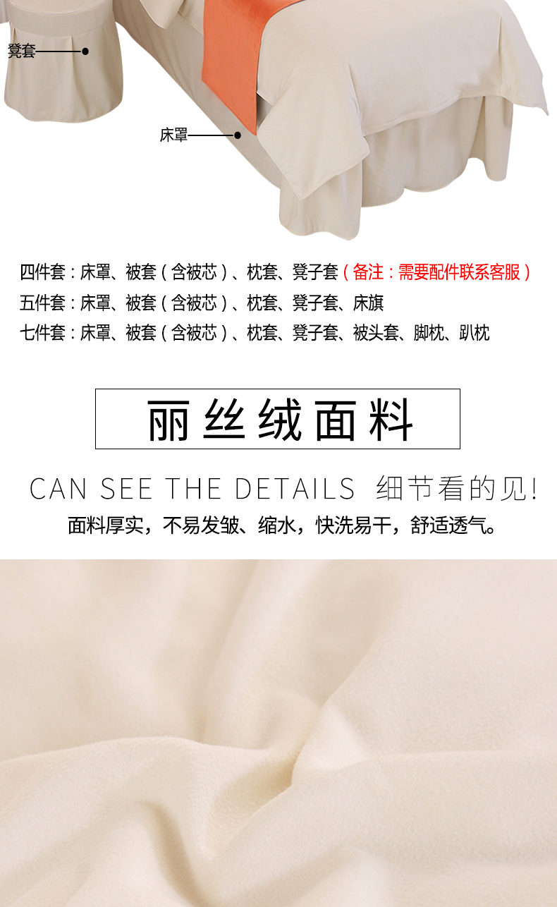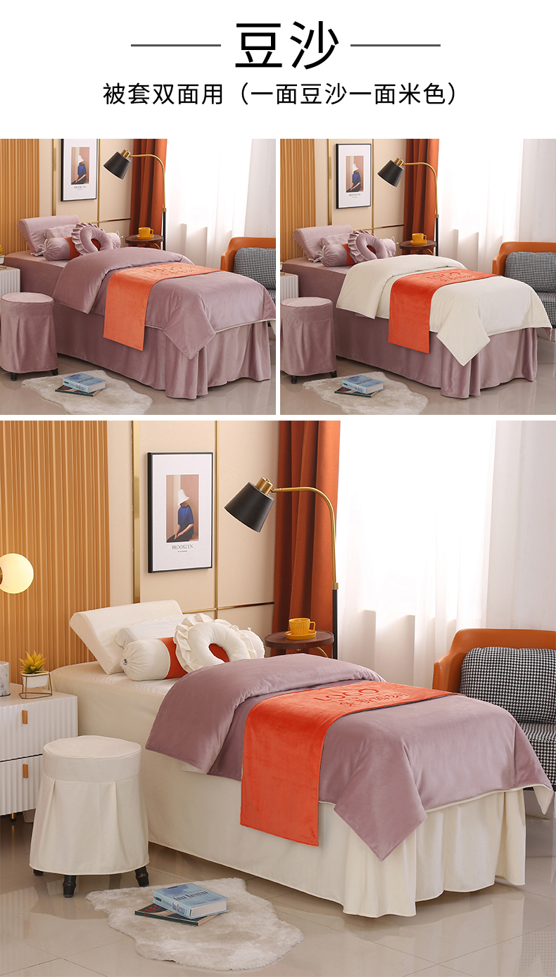 琪宝阁 2024新款立丝绒美 容床罩套件-欧若拉 桔色