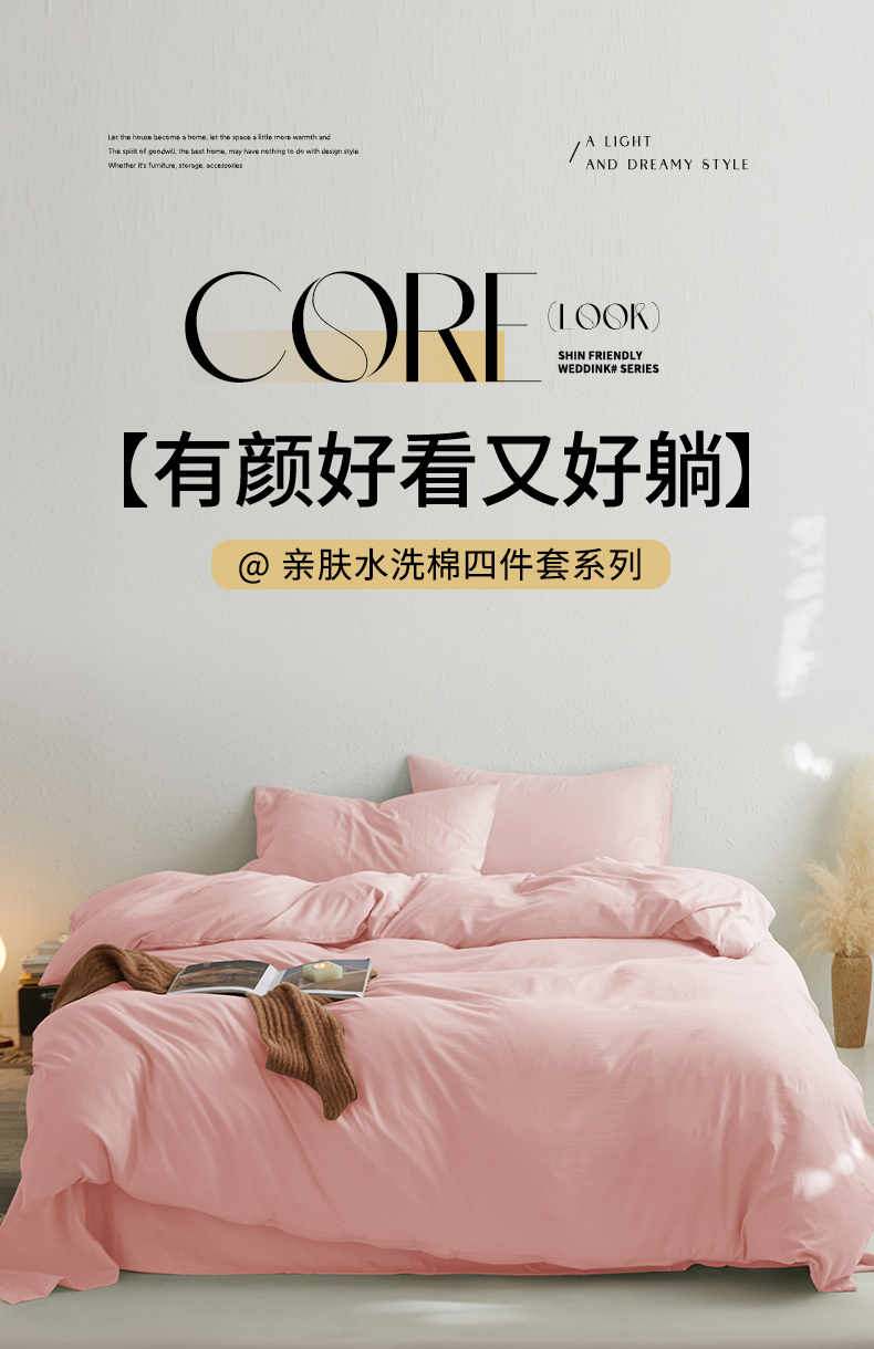 当前位置: 91家纺网 > 商品网购 > 床品套件 > 四件套 > 水洗棉四件套 > 沃朴家居 2024新款亲肤水洗棉四件套粉玉
