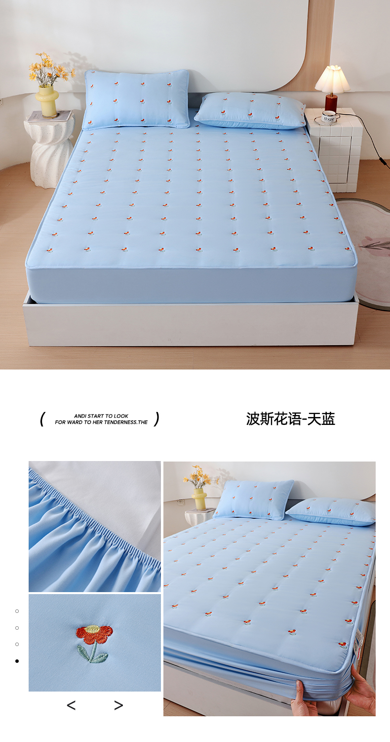 • 91家纺网 家纺一手货源 找家纺 尊康家纺(原磊科) 2024新款奶昔棉抗菌夹棉床笠系列-波斯花语 波斯花语-天蓝