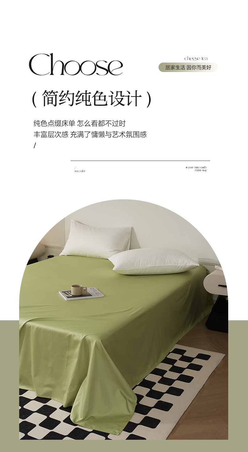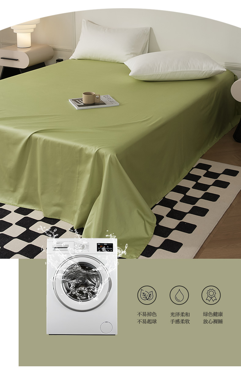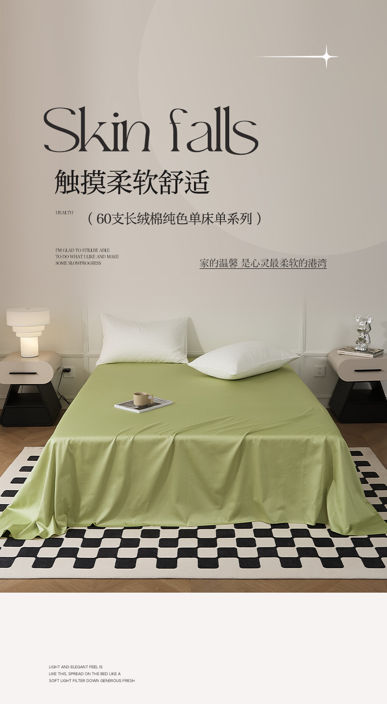 • 91家纺网 家纺一手货源 找家纺 EH家居 2024新款60支长绒棉纯色单床单 春芽绿