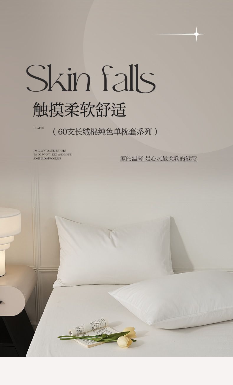 商品名称:EH家居 2024新款60支长绒棉纯色单枕套 纯白色