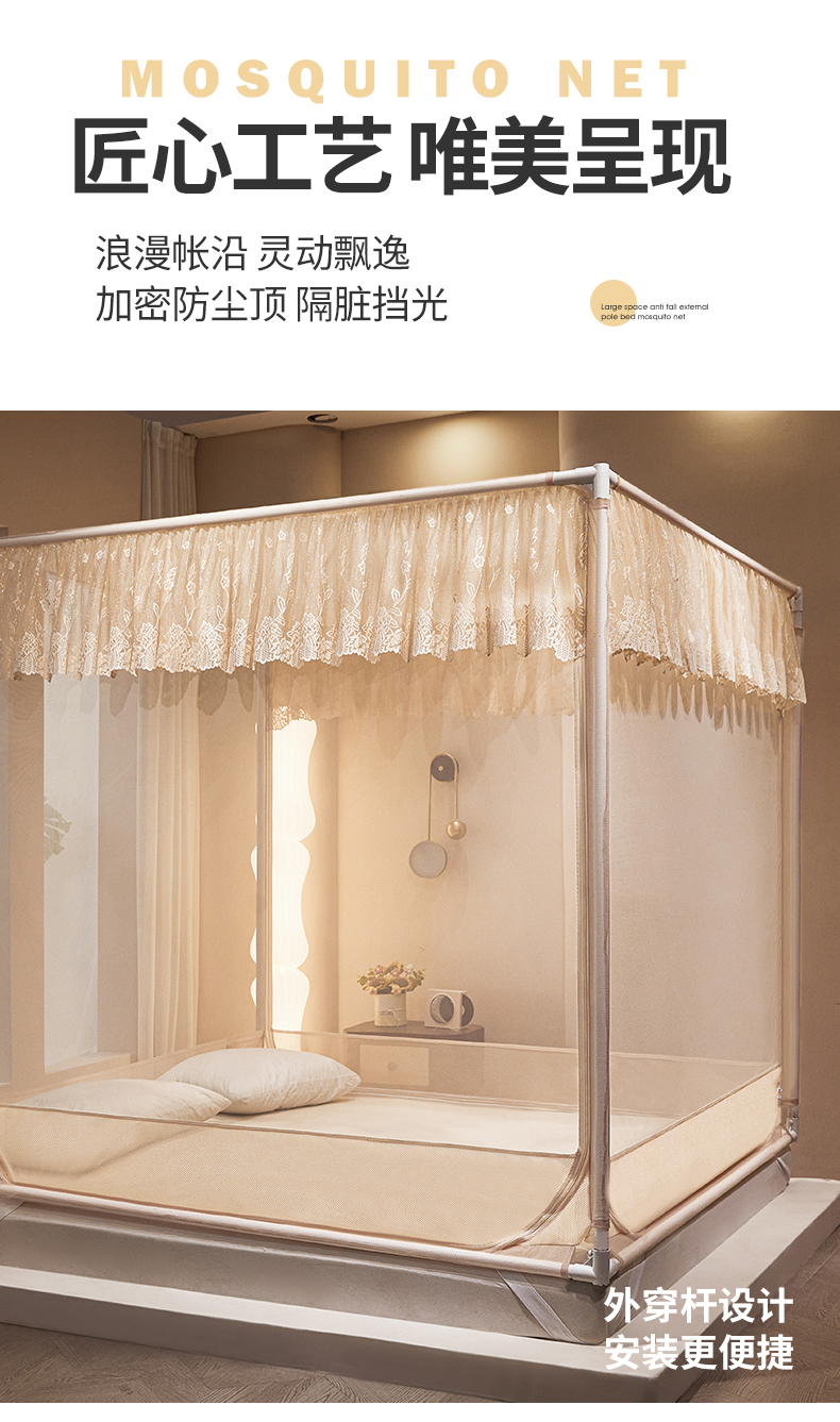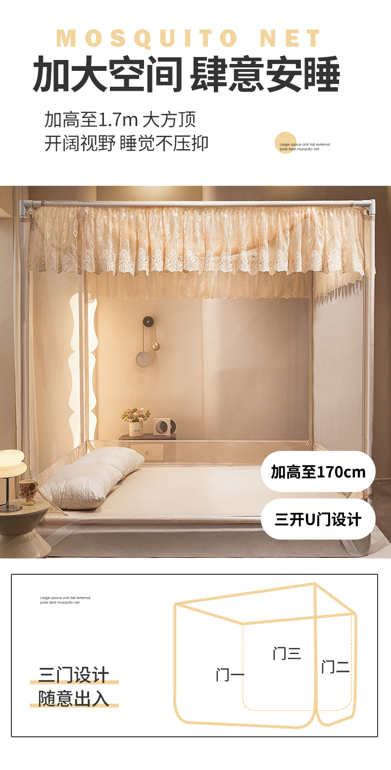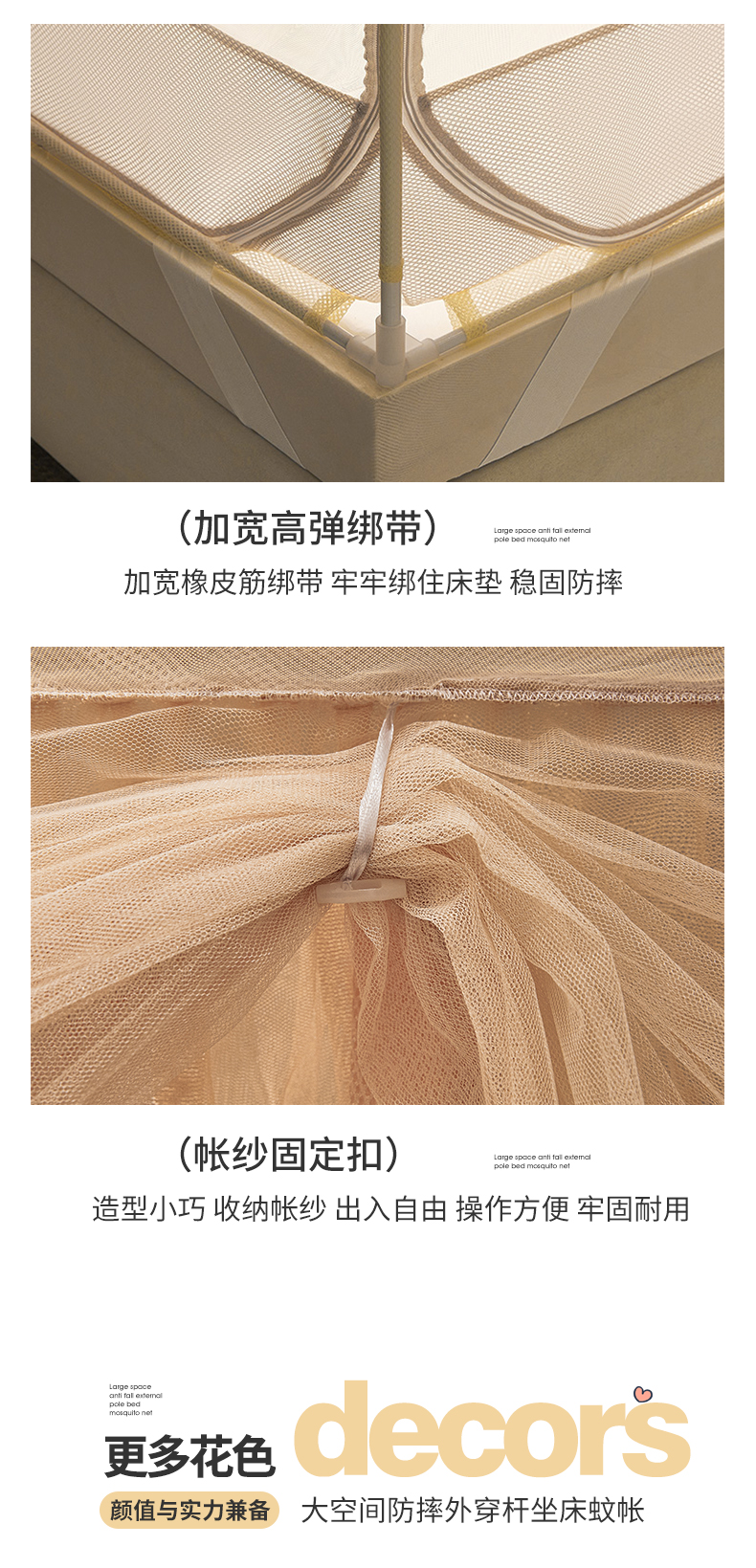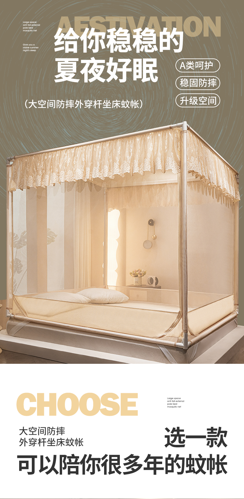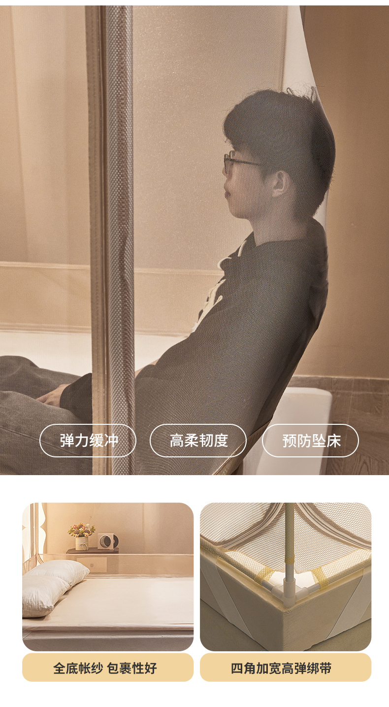 艺利轩蚊帐 2025新款大空间防摔外穿杆坐床蚊帐-繁花 繁花 香槟
