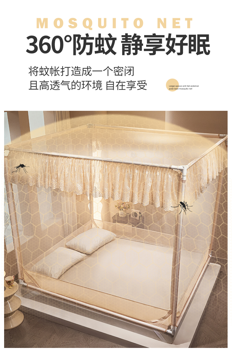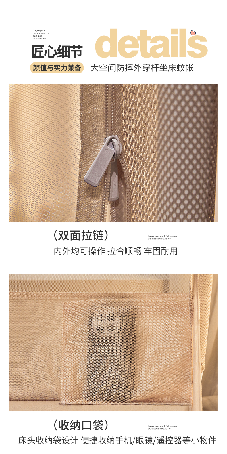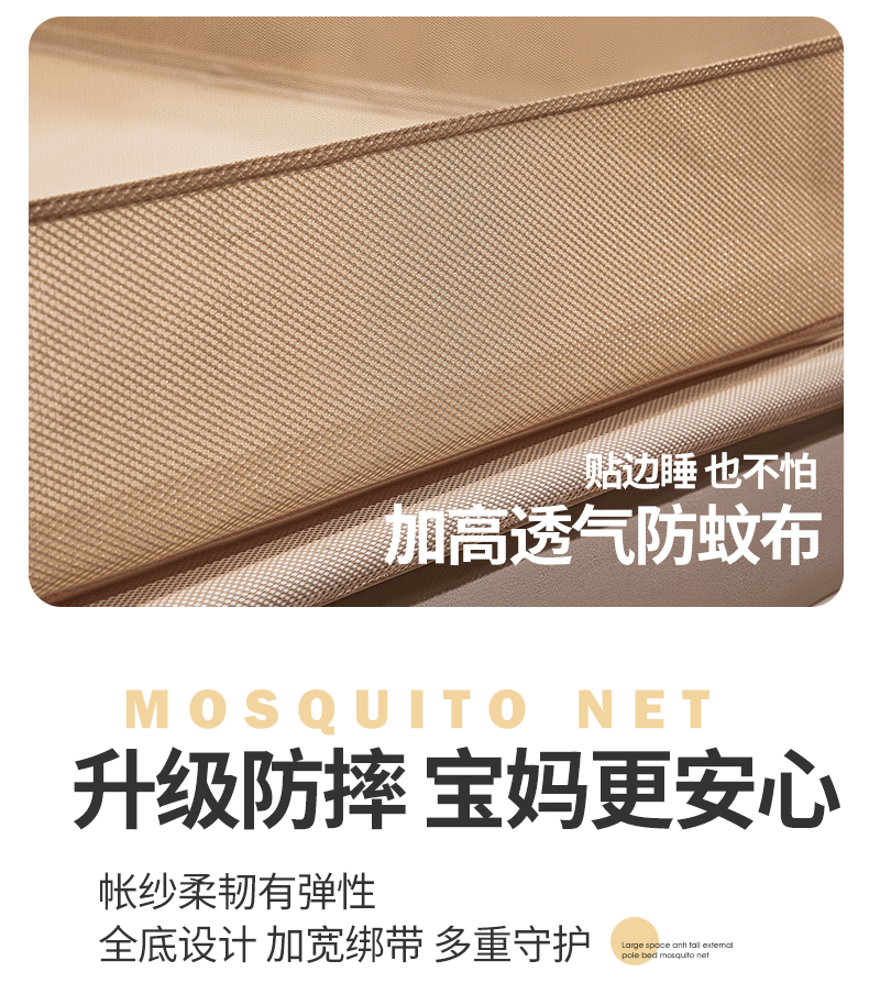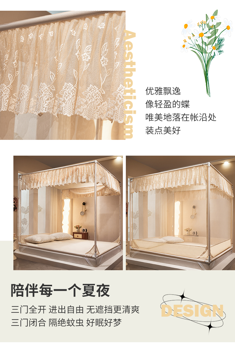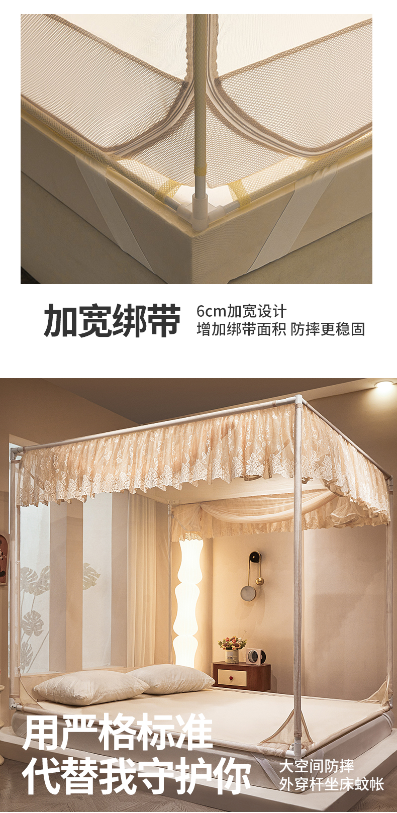 艺利轩蚊帐 2025新款大空间防摔外穿杆坐床蚊帐-繁花 繁花 香槟