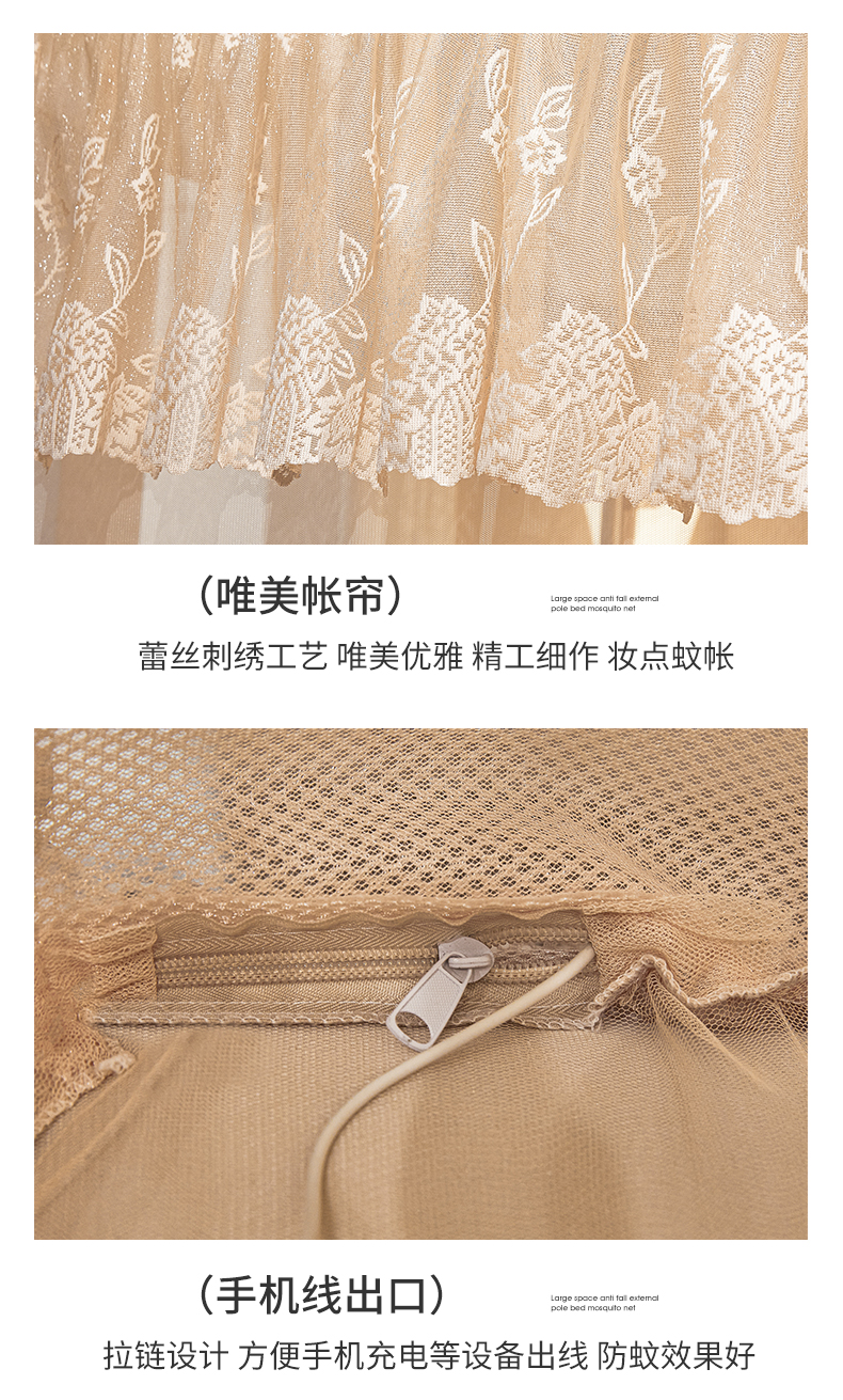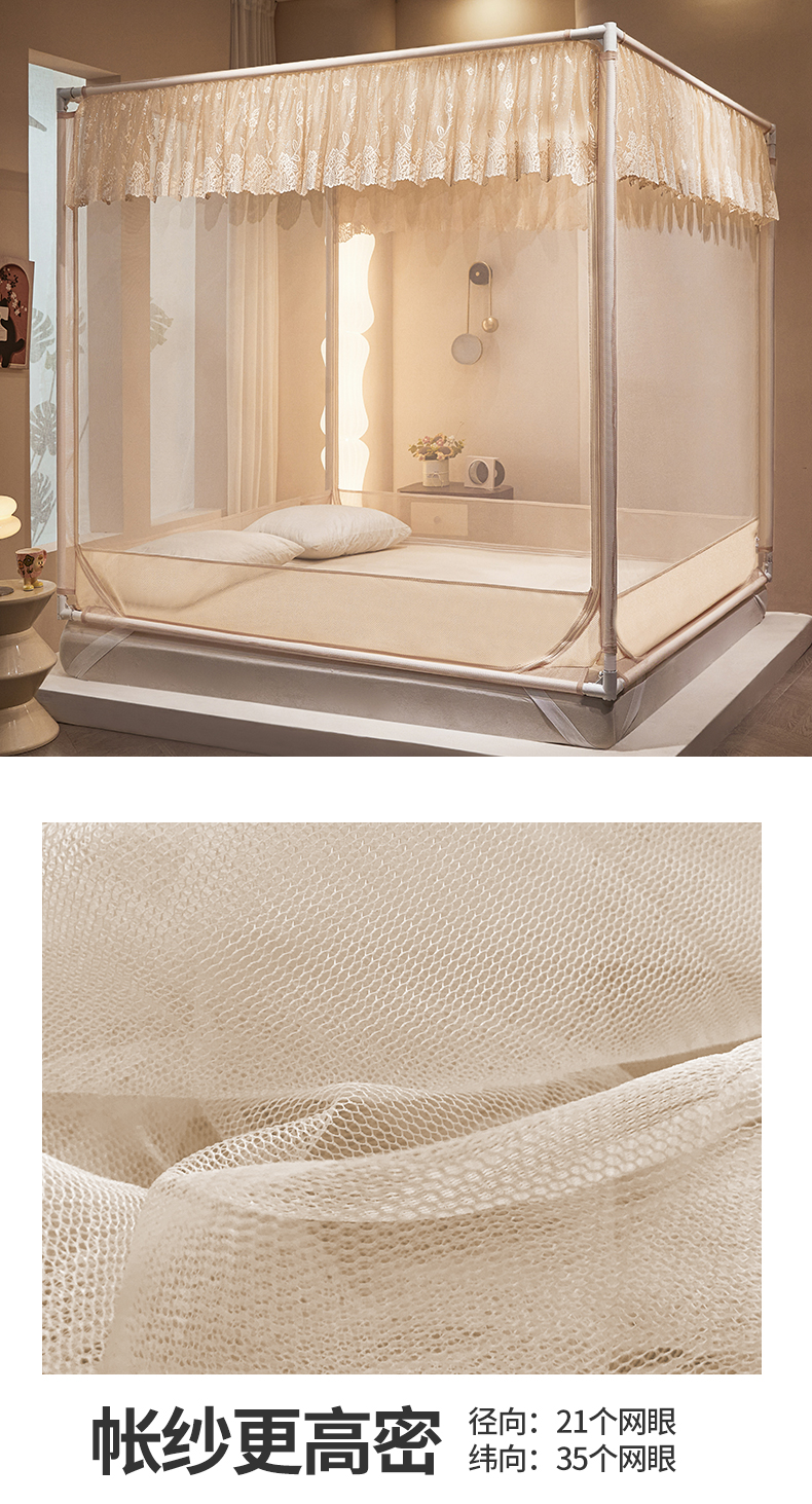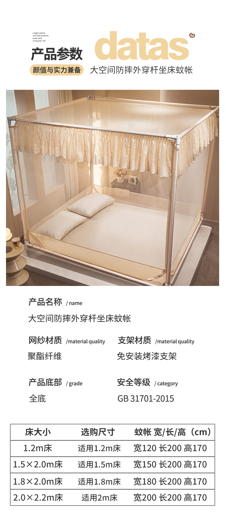 商品名称:艺利轩蚊帐 2025新款大空间防摔外穿杆坐床蚊帐-繁花 繁花 香槟