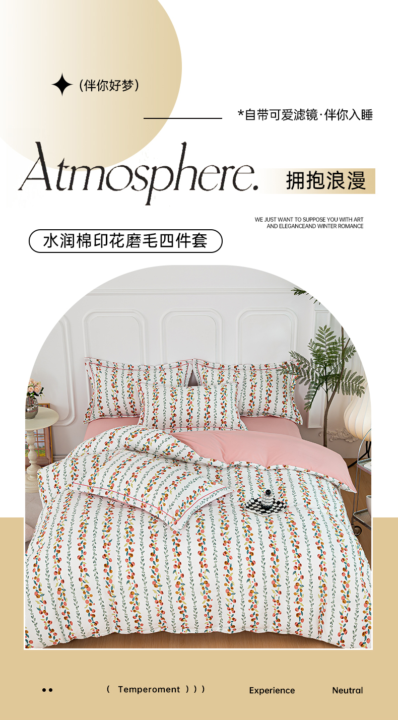 雅慕家居 2025新款A类碎花水润棉磨毛四件套 果果乐园