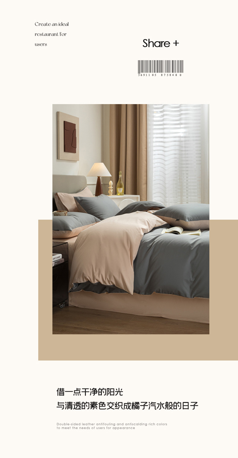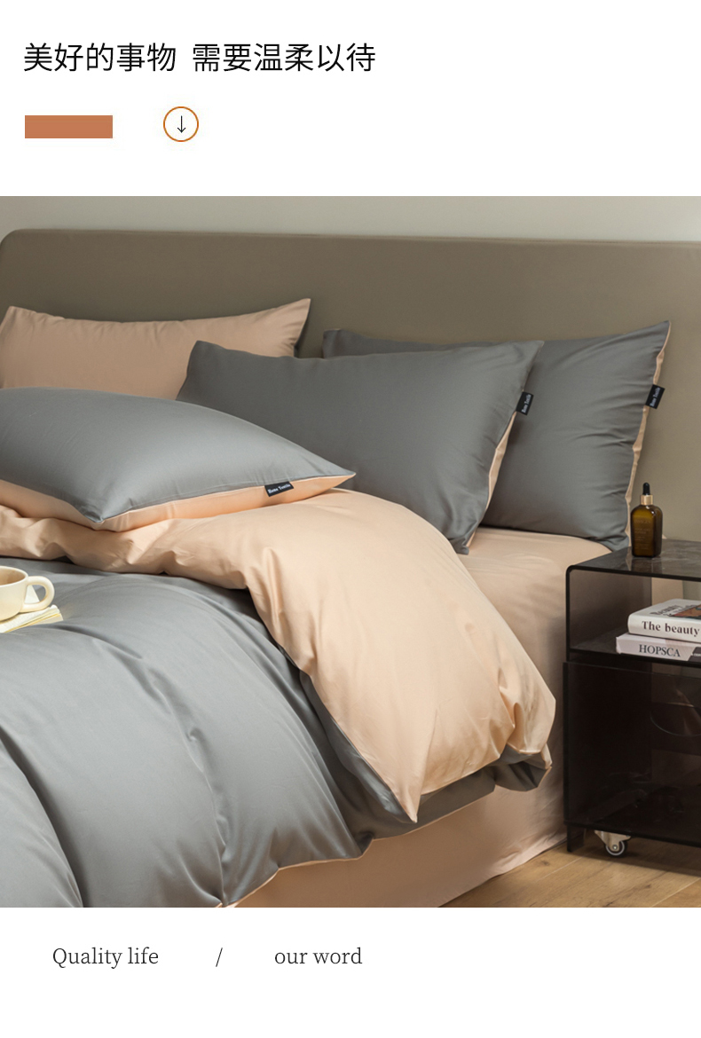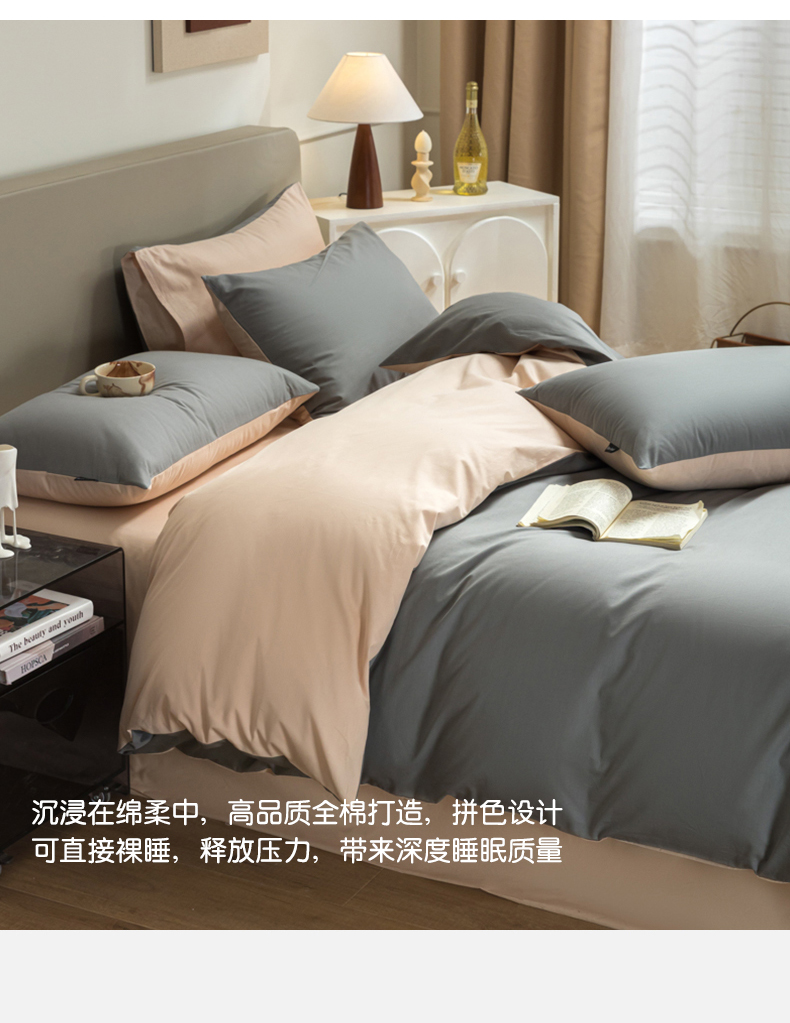 商品名称:典曼家纺 2025新品A类长绒棉纯色双拼四件套 月岩灰+白桃粉