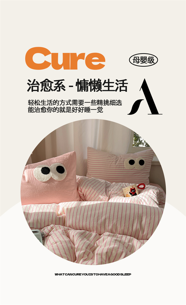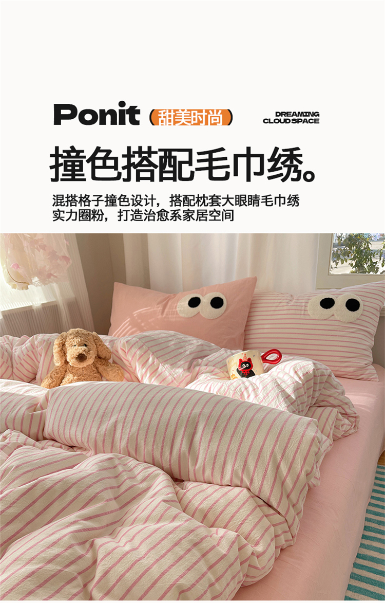 当前位置: 91家纺网 > 商品网购 > 床品套件 > 四件套 > 水洗棉四件套 > 2025新款A类亲肤舒适软糯云柔水洗棉大眼睛毛巾绣混搭格子撞色系列四件套 大眼粉条粉