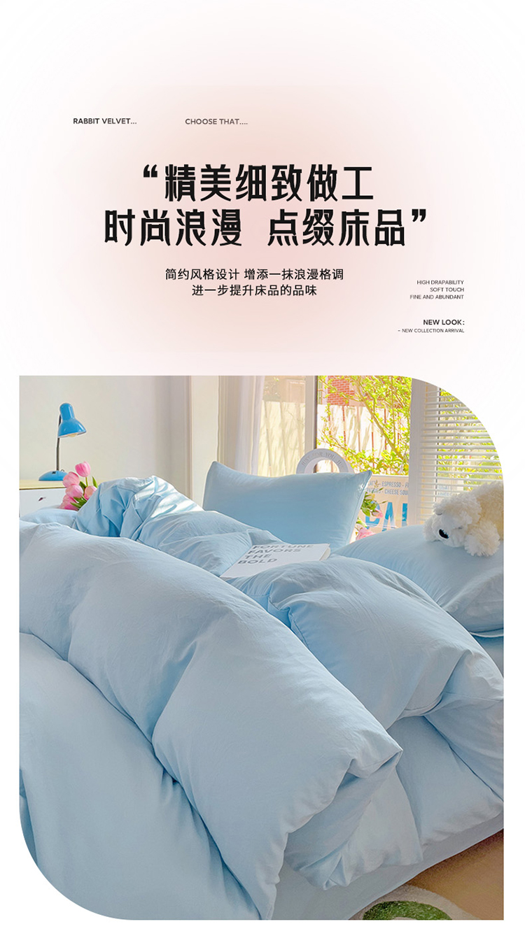 当前位置: 91家纺网 > 商品网购 > 床品套件 > 四件套 > 水洗棉四件套 > 森璐 2025新款水洗棉双拼四件套宿舍三件套床单被套枕套纯色-浅蓝色