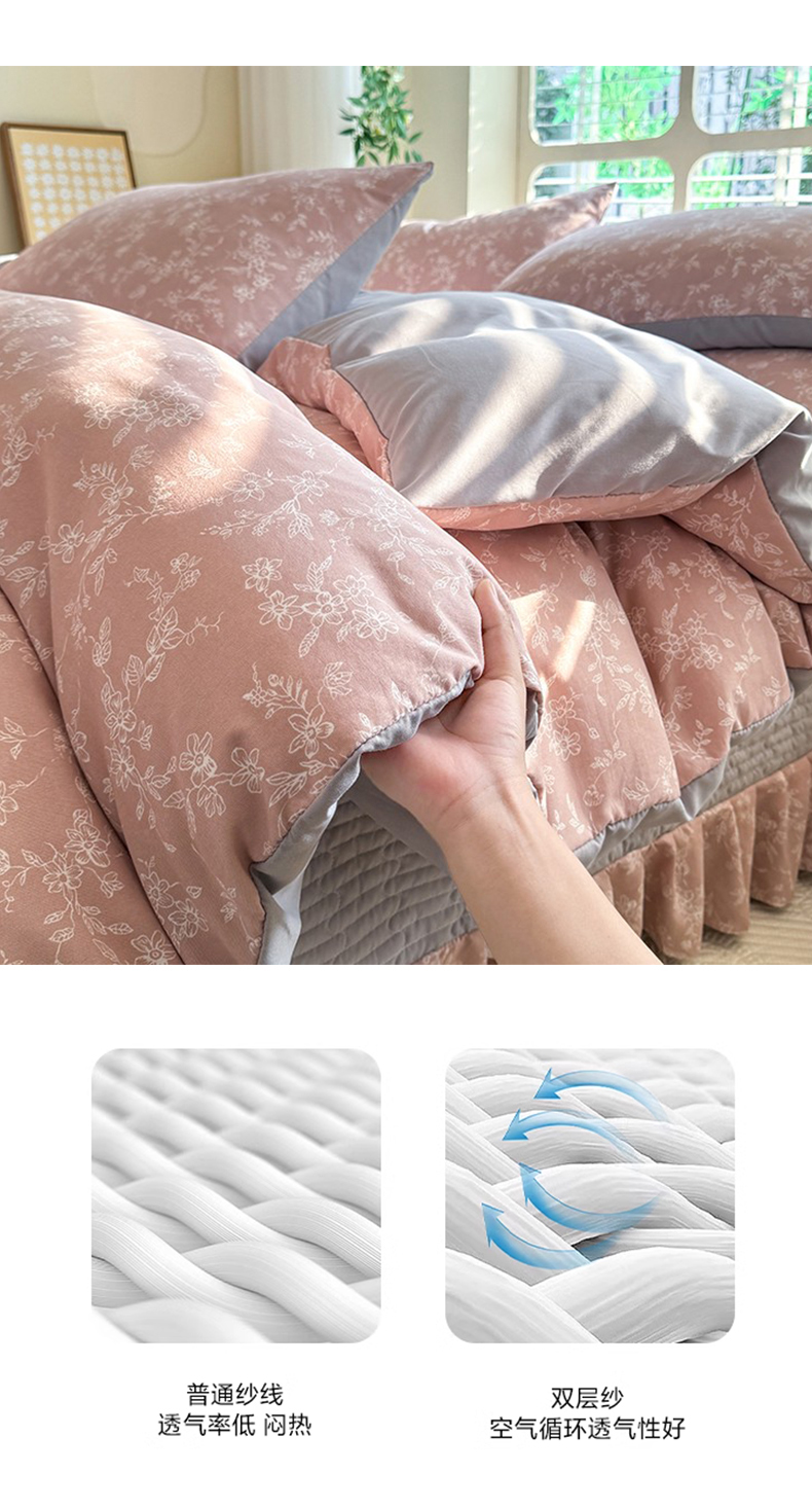 商品名称:韩约家纺 2025新款简约款1针织双层纱床盖四件套 曼玲(简约款)