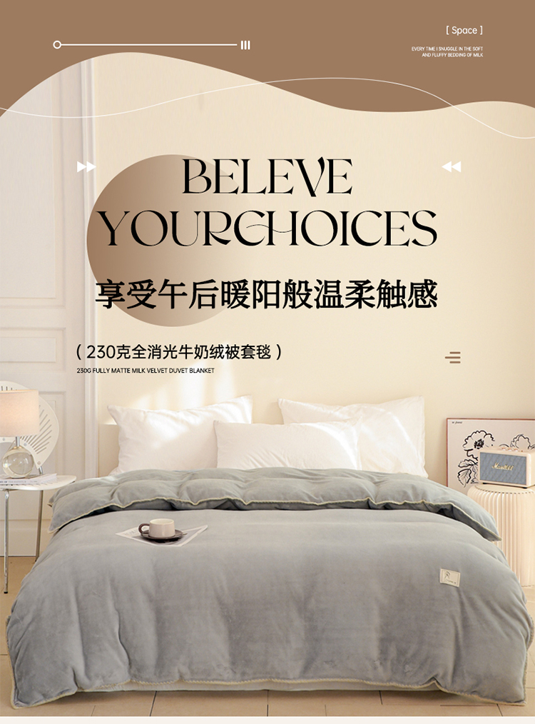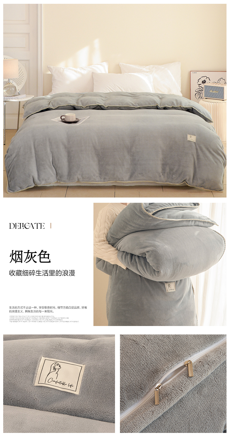 商品名称:法芙娜 2025新款牛奶绒被套毯 烟灰色