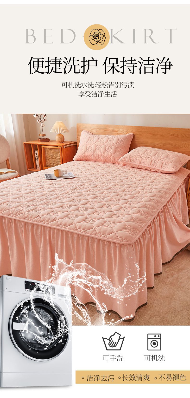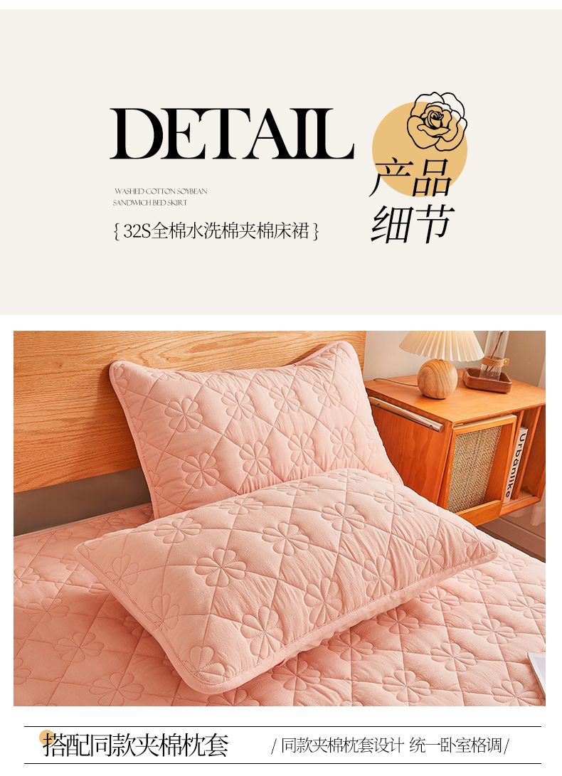商品名称:(总)3C 2024新款全棉水洗棉夹棉床裙-四叶草系列