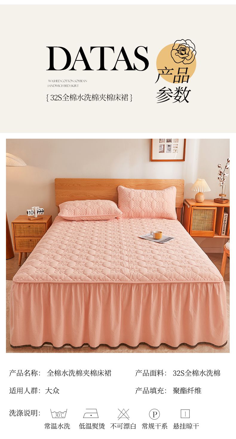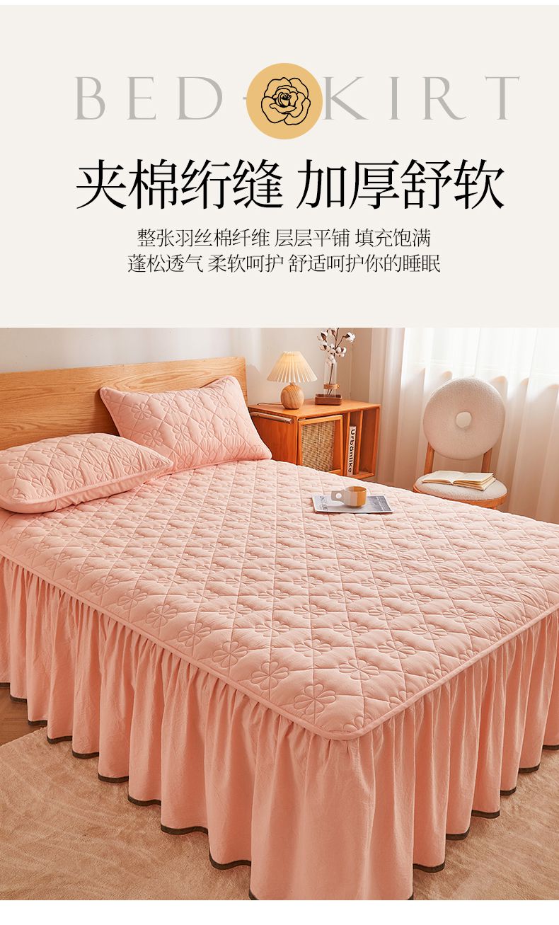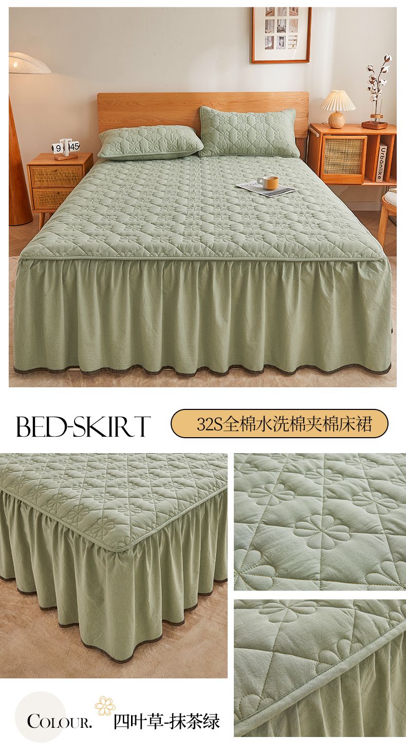 (总)3C 2024新款全棉水洗棉夹棉床裙-四叶草系列