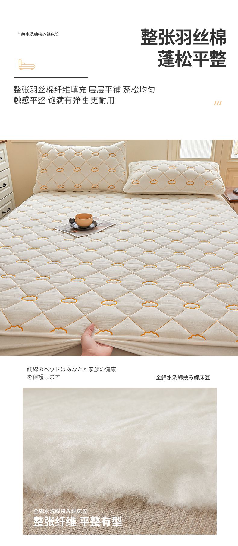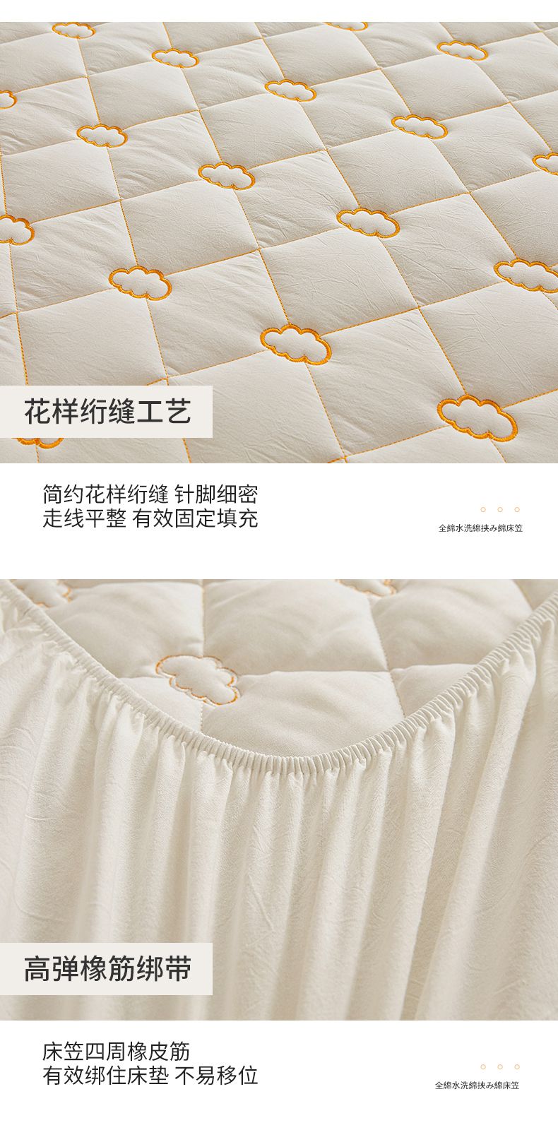 • 91家纺网 家纺一手货源 找家纺 3C 2024新款云朵全棉水洗棉床笠 云朵 珍珠白