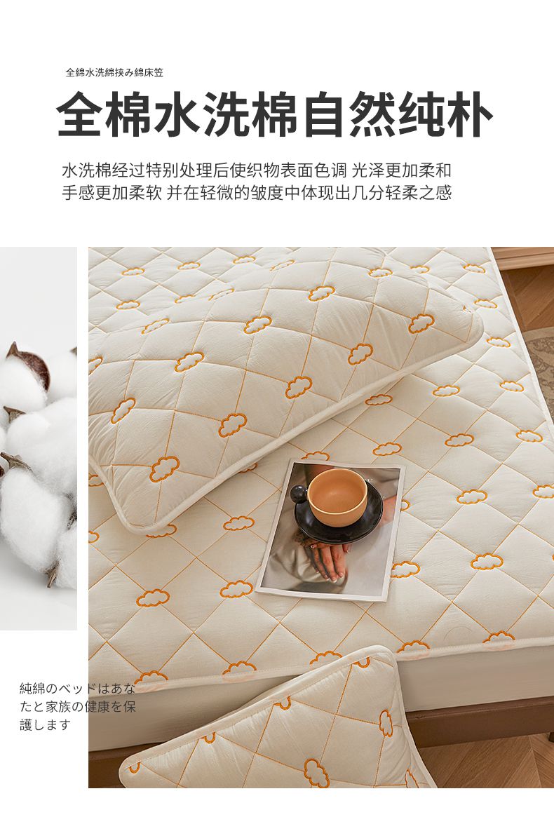 3C 2024新款云朵全棉水洗棉床笠 云朵 珍珠白