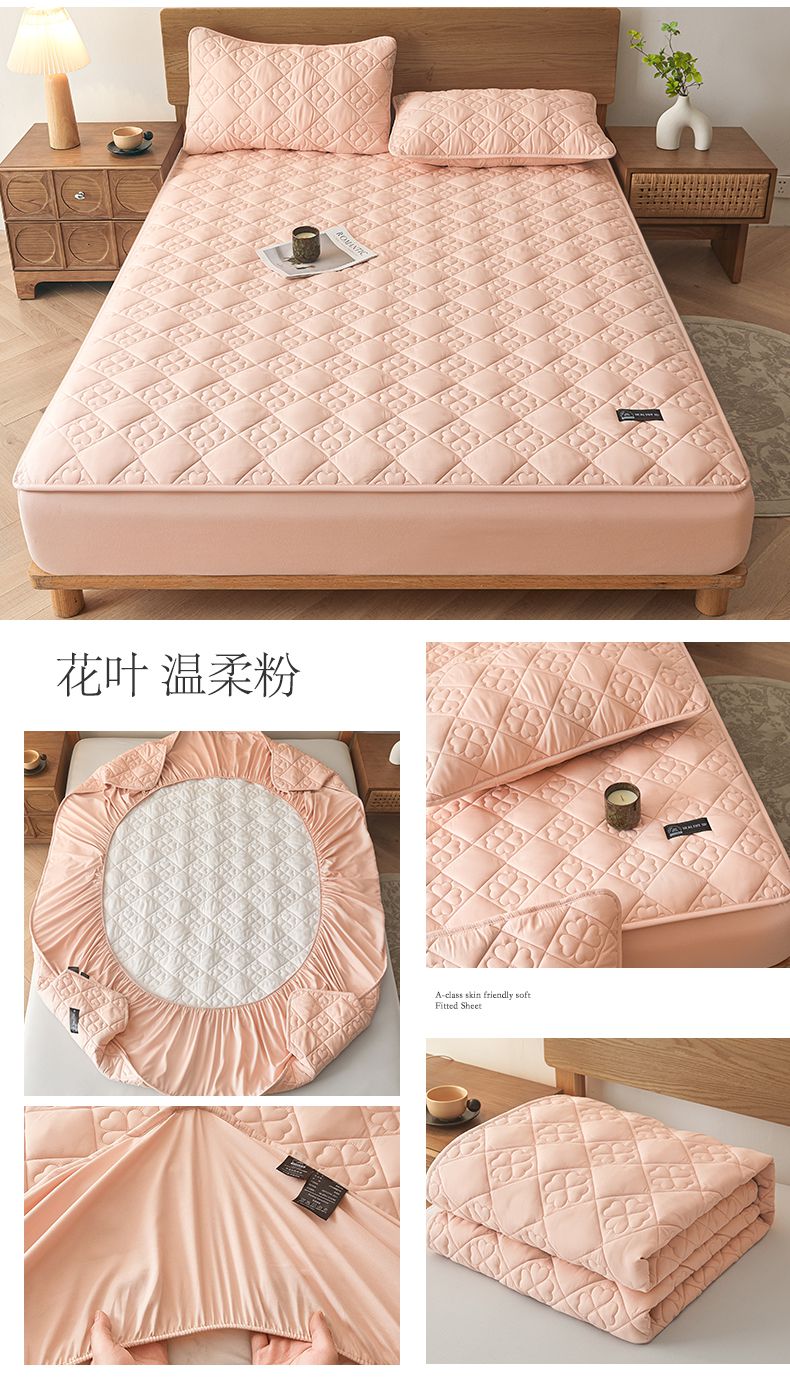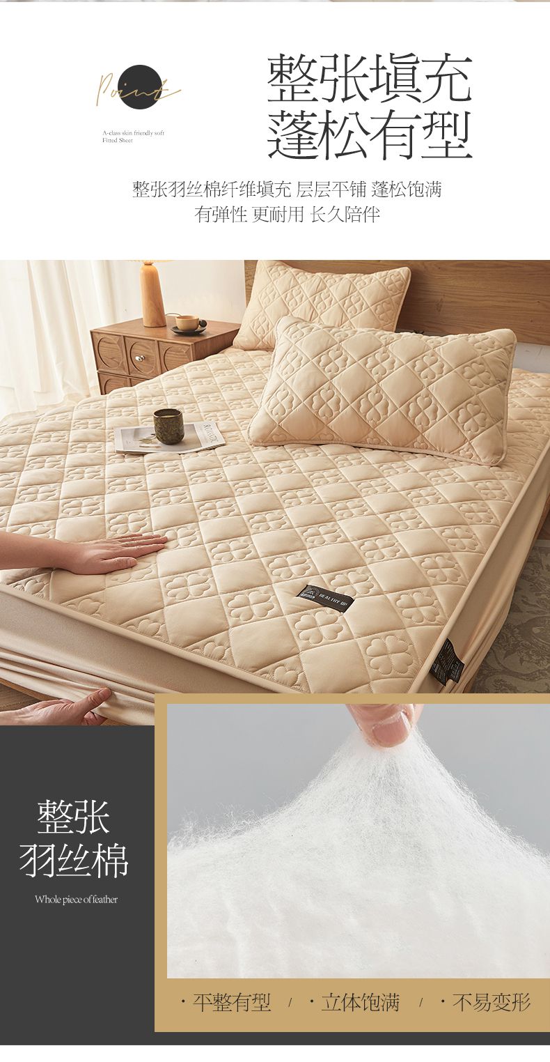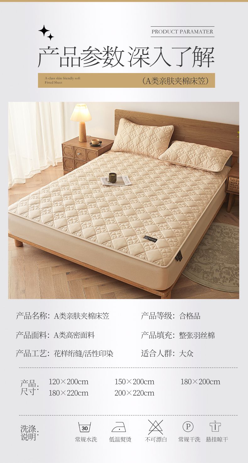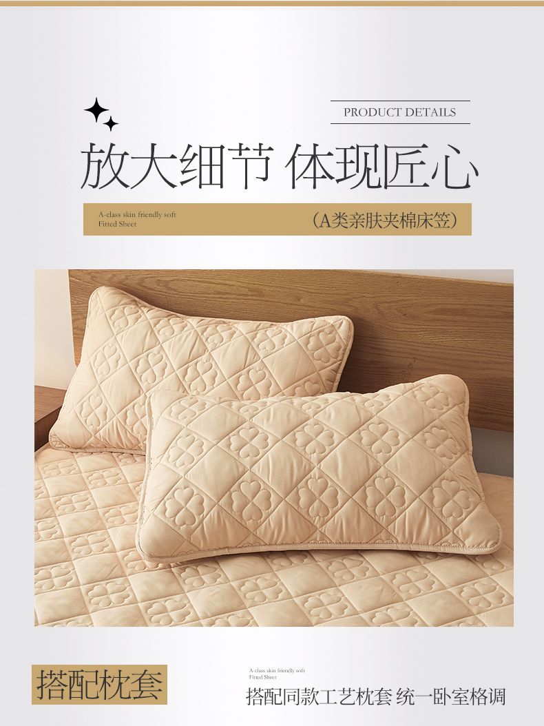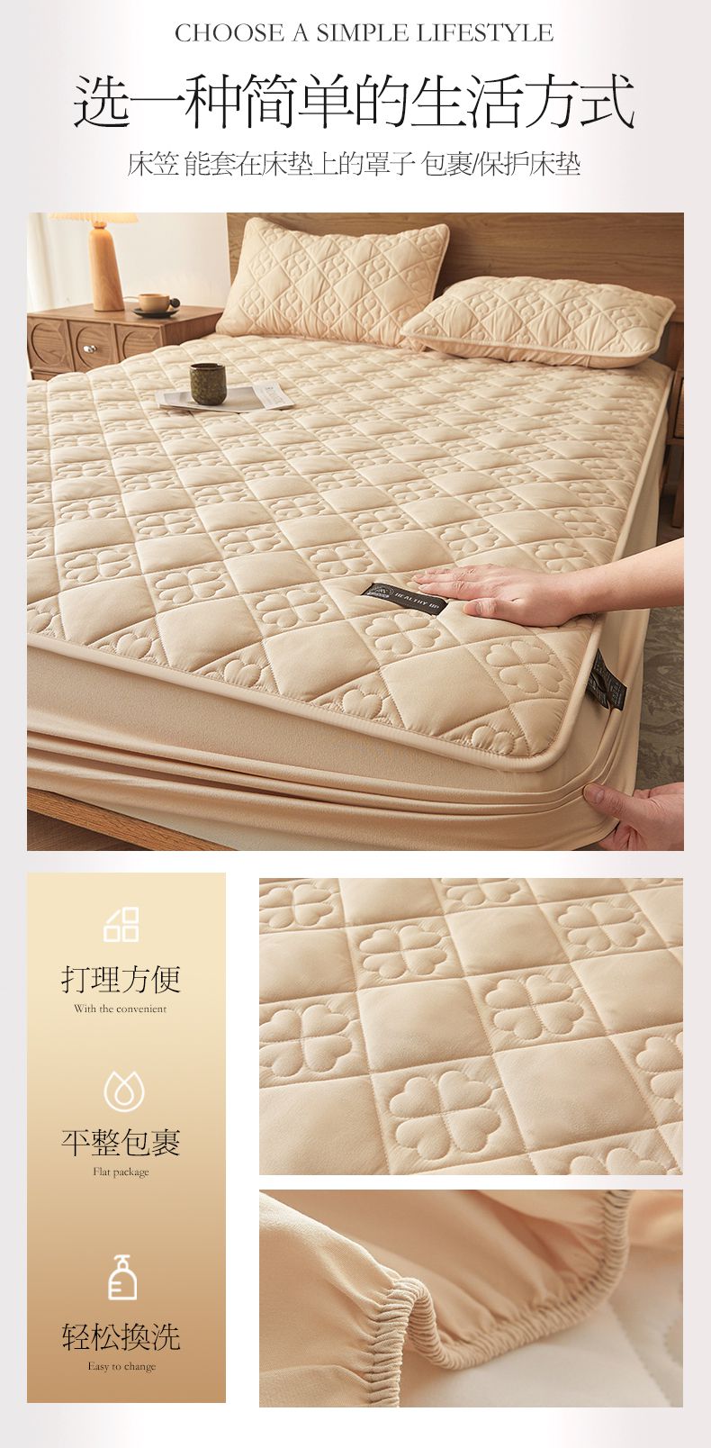 • 91家纺网 家纺一手货源 找家纺 3C 2025新款A类亲肤夹棉床笠-花叶 花叶 浅卡其