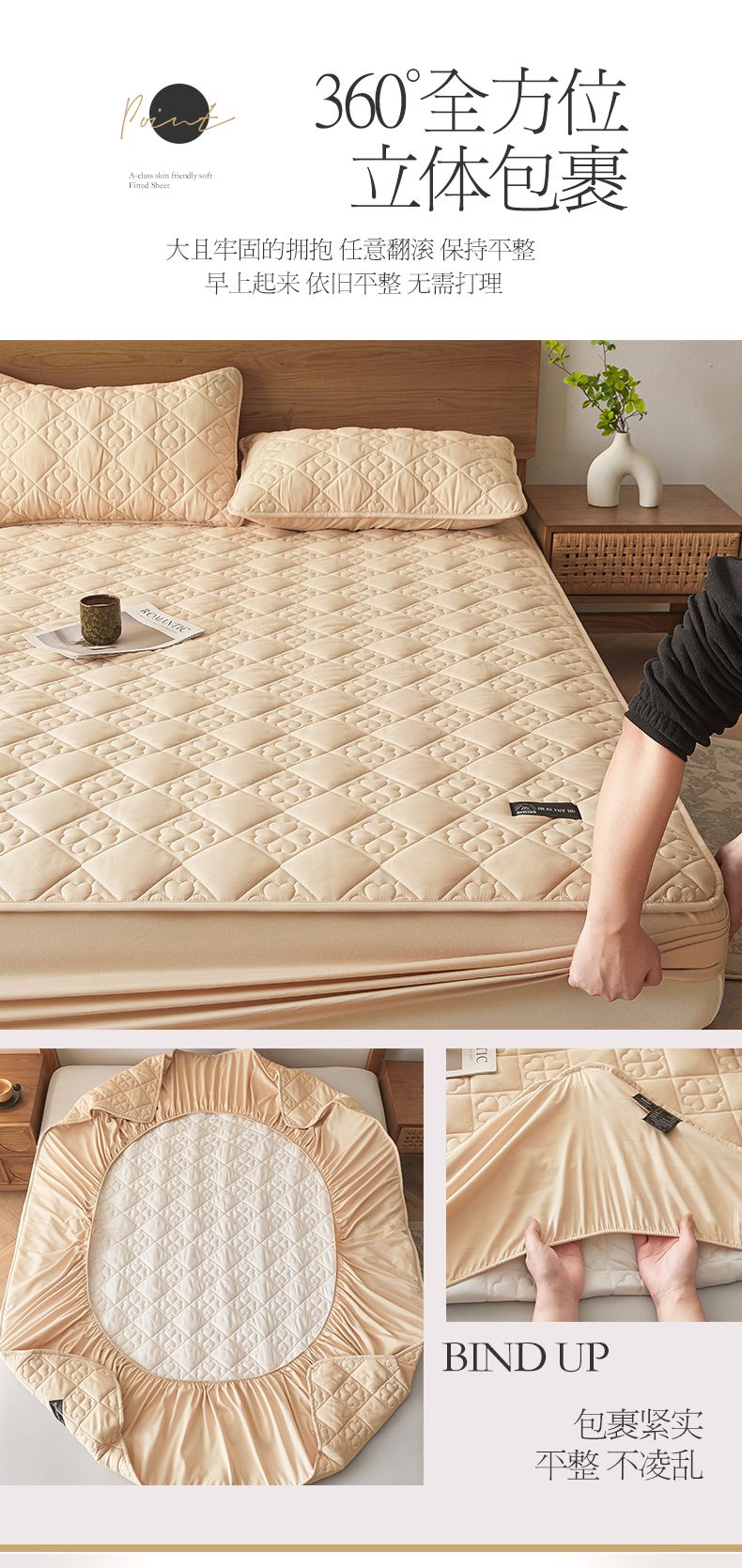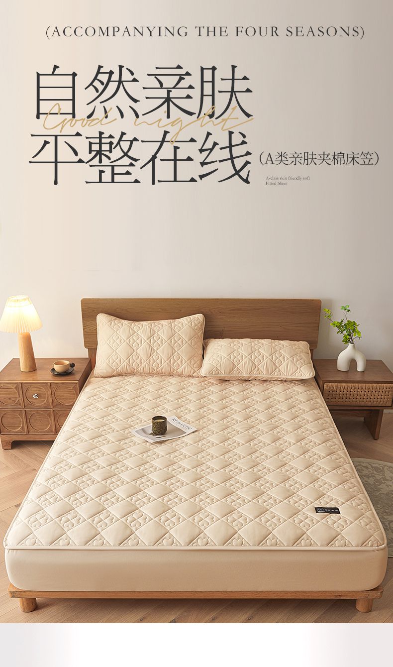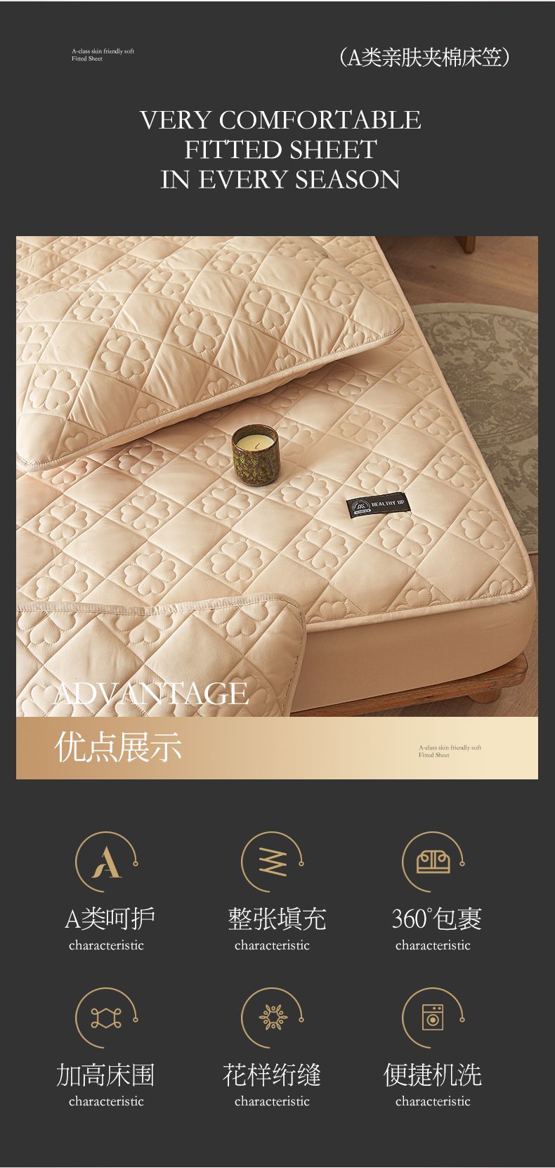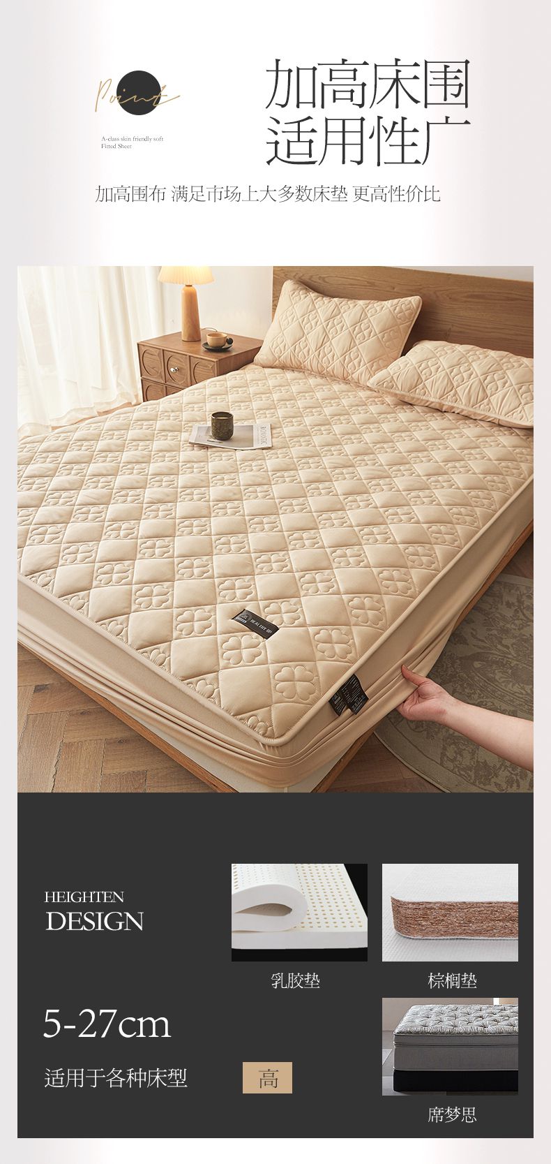 • 91家纺网 家纺一手货源 找家纺 3C 2025新款A类亲肤夹棉床笠-花叶 花叶 浅卡其