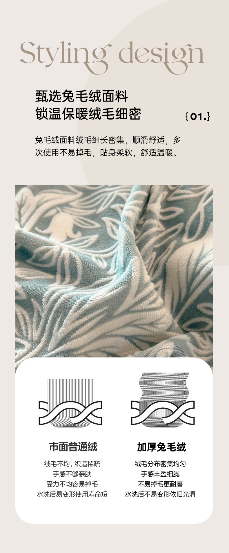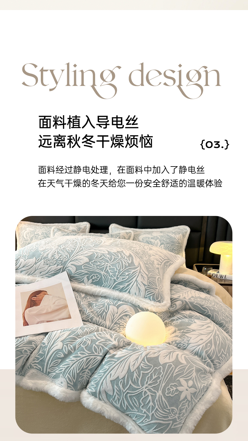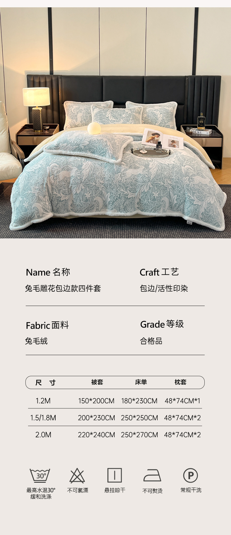 商品名称:畅畅家纺 2025新款兔毛绒大包边雕花牛奶绒绒四件套 香缇娜-蓝