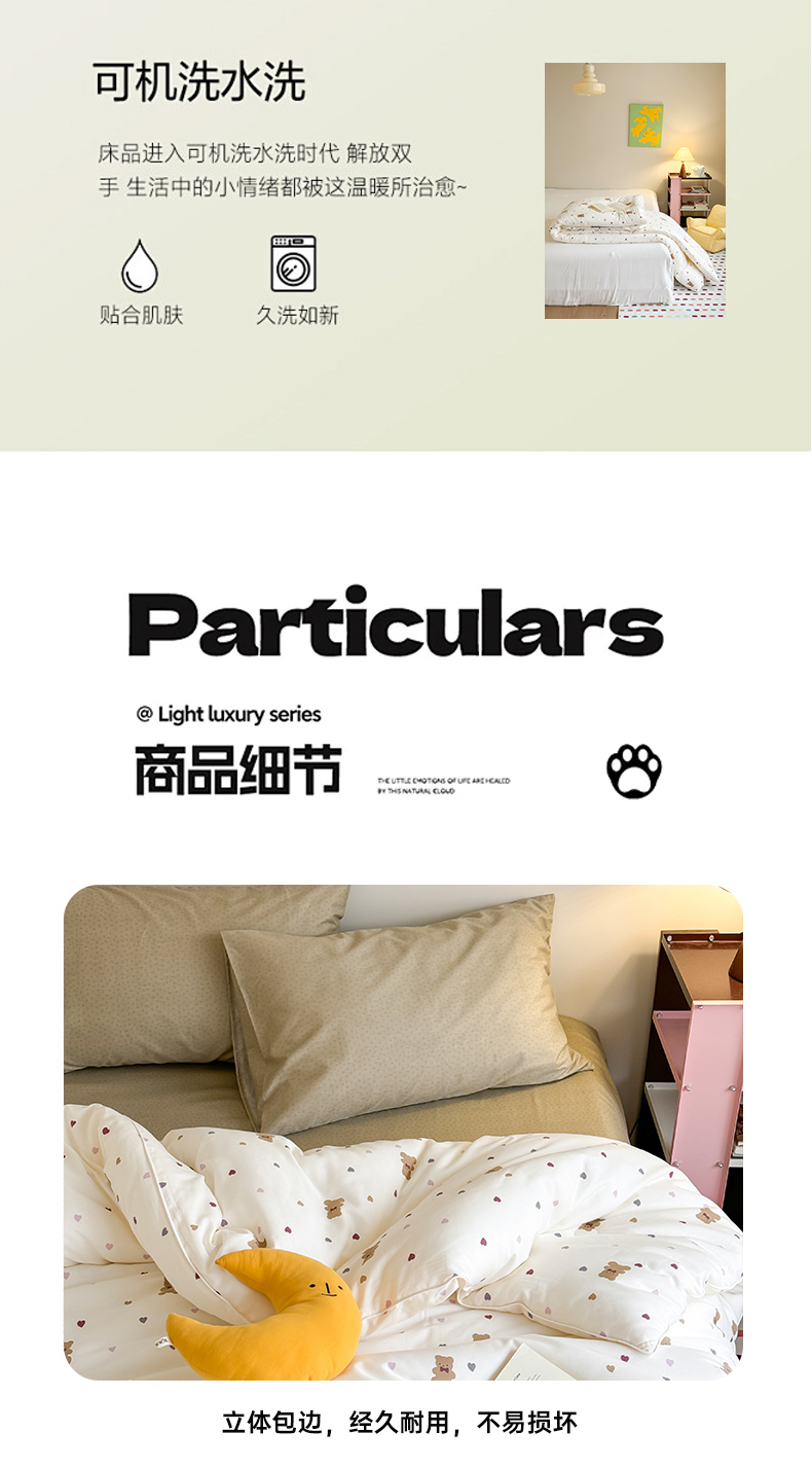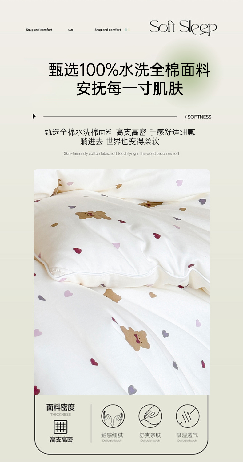 当前位置: 91家纺网 > 商品网购 > 床品套件 > 四件套 > 其它四件套 > 亿莱鑫 2025新款全棉水洗棉7A抗菌被子四件套(带质检报告) 爱心小熊