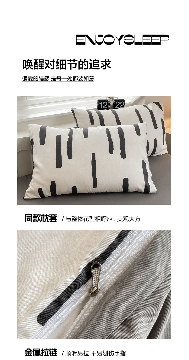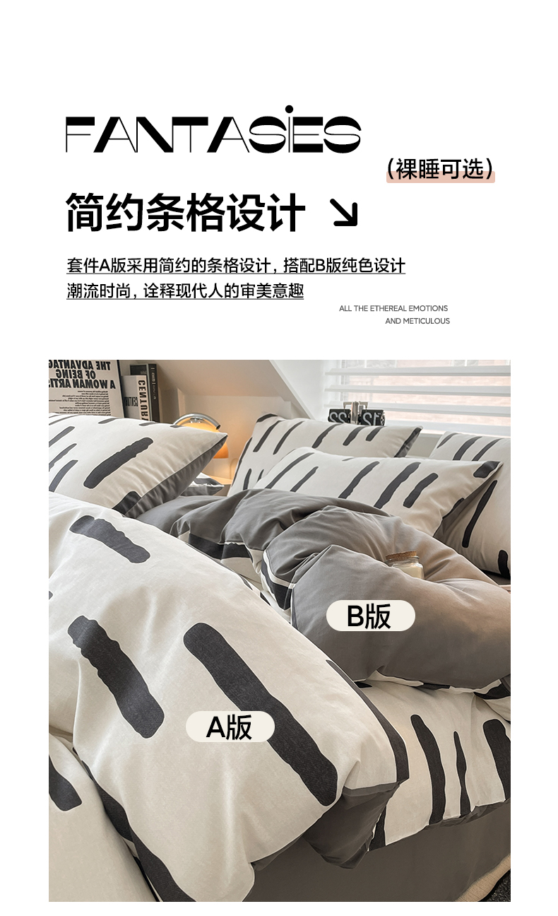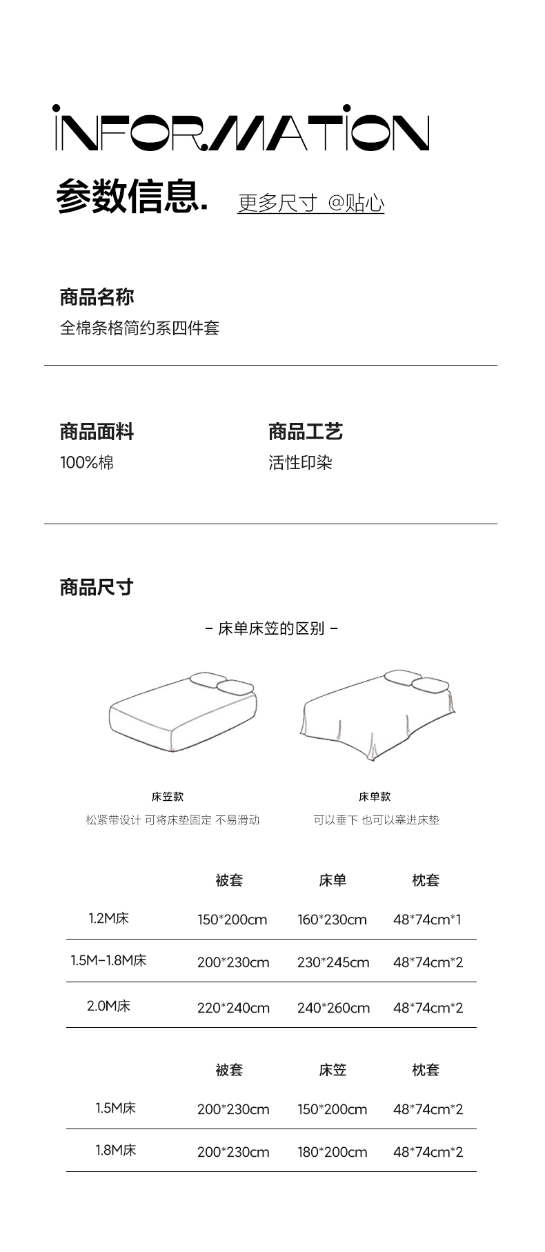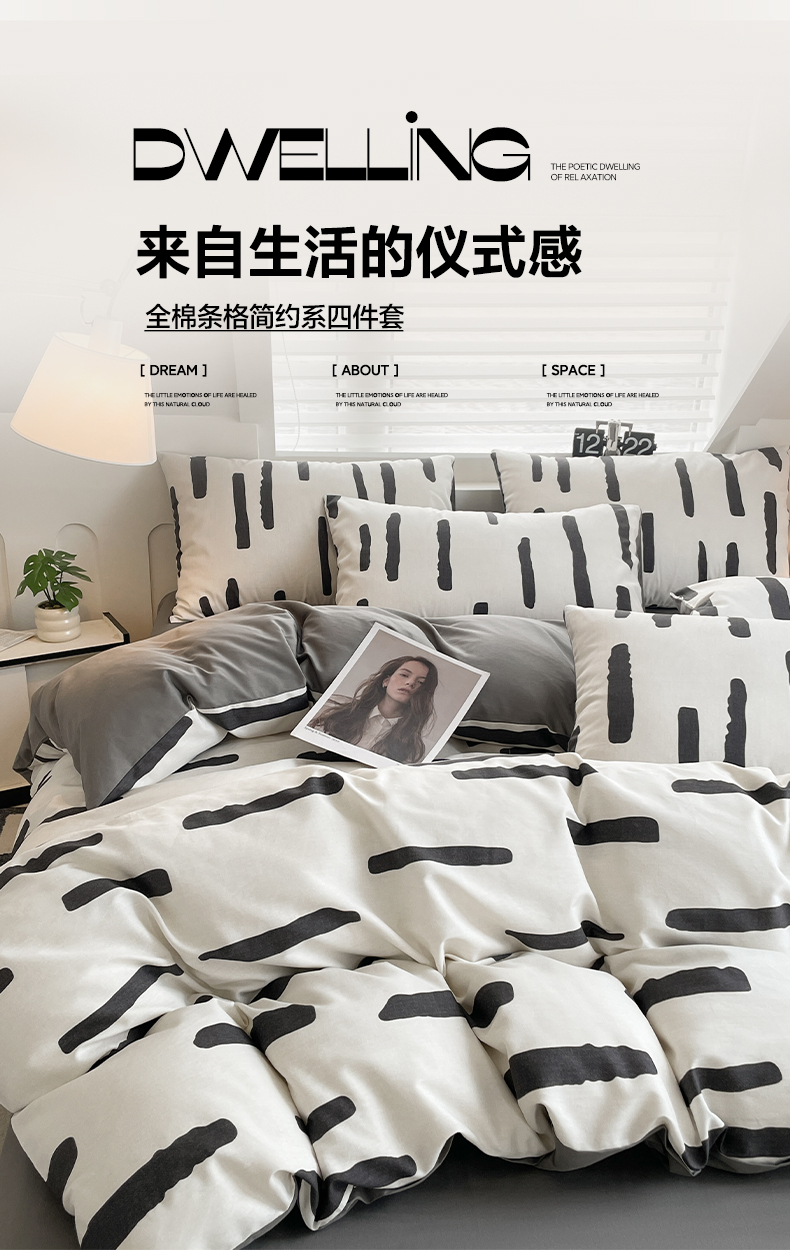 商品名称:雅居纺家纺 2025新款全棉条格简约系四件套 摩卡