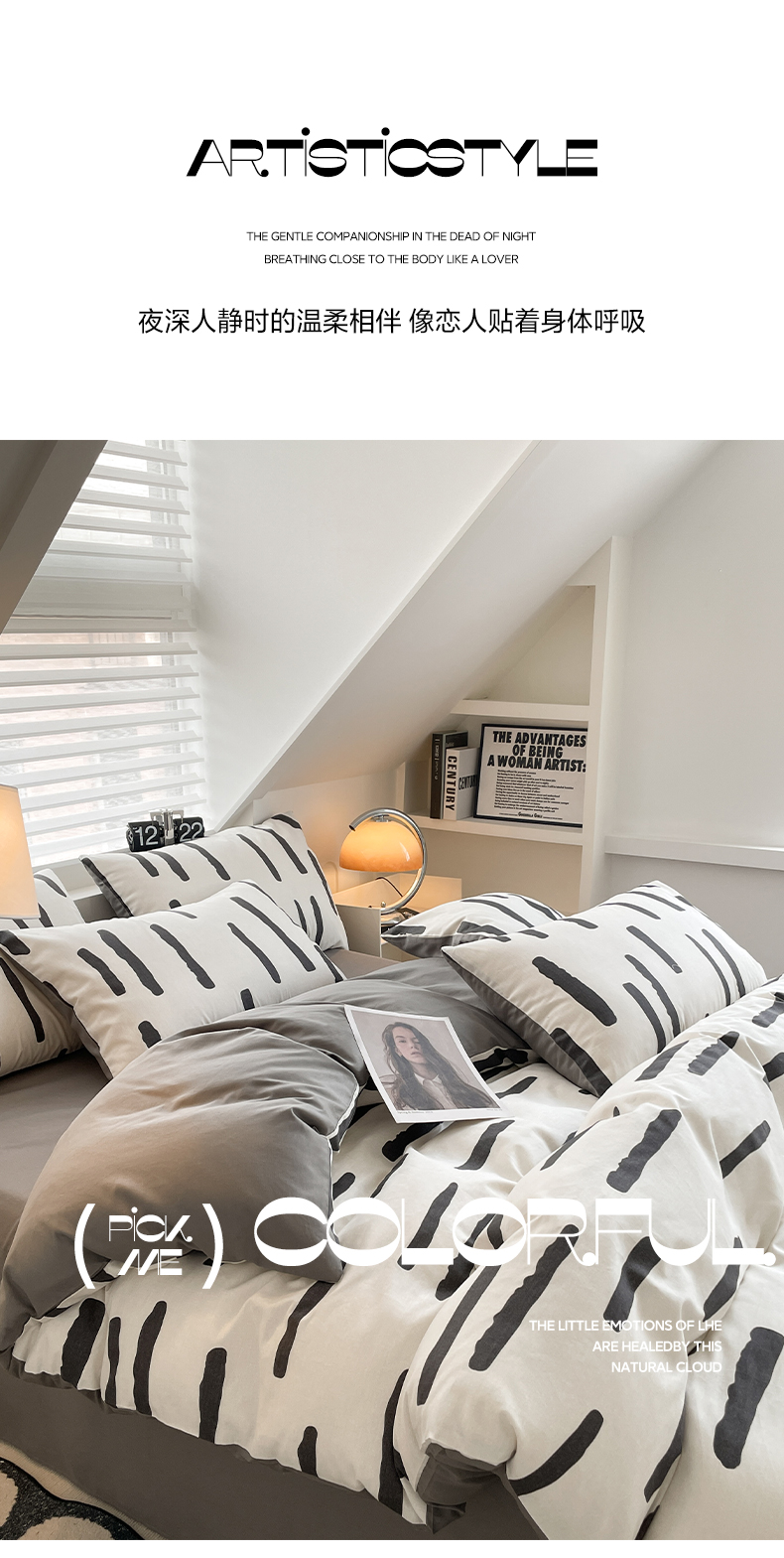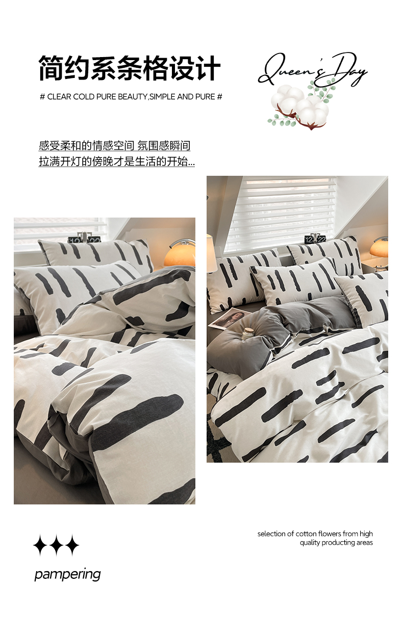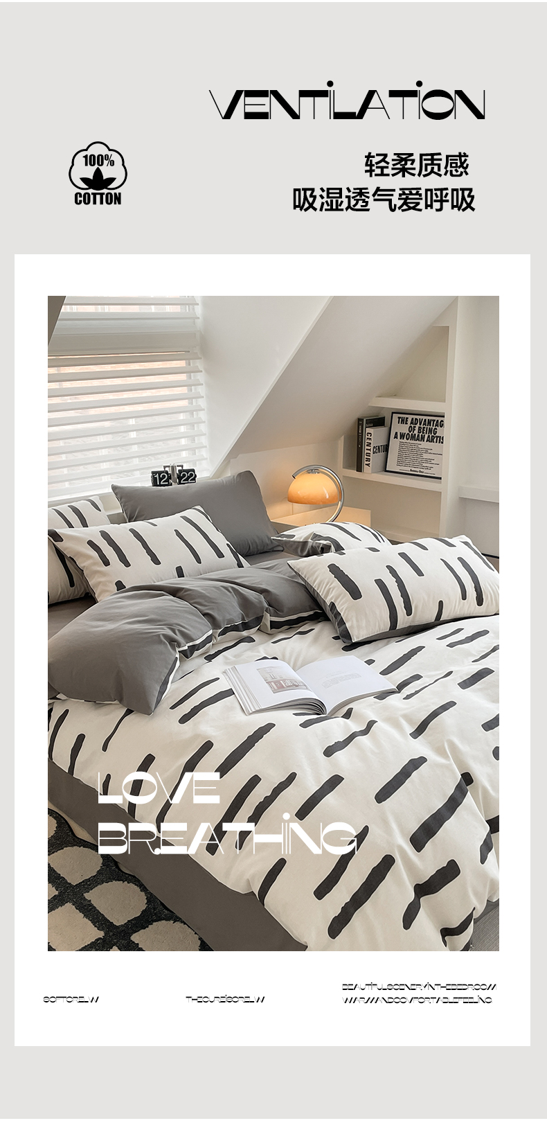 商品名称:雅居纺家纺 2025新款全棉条格简约系四件套 摩卡