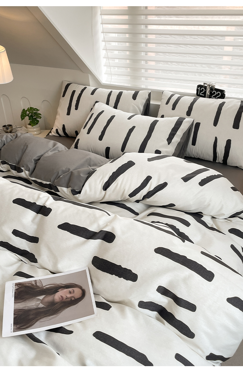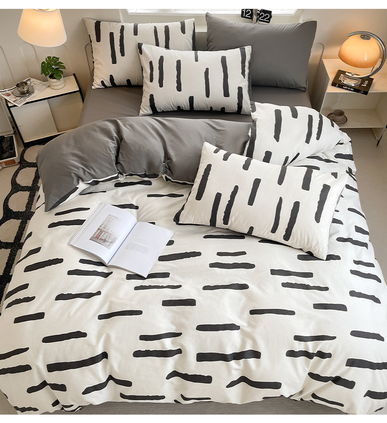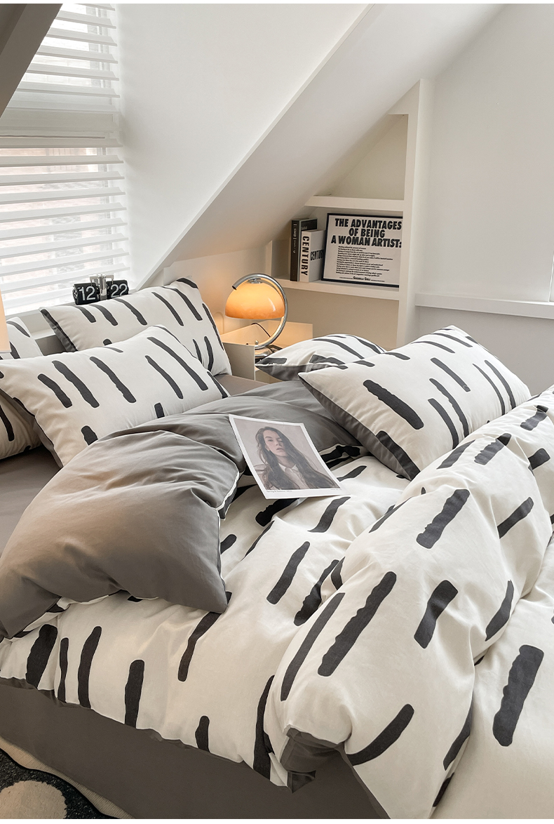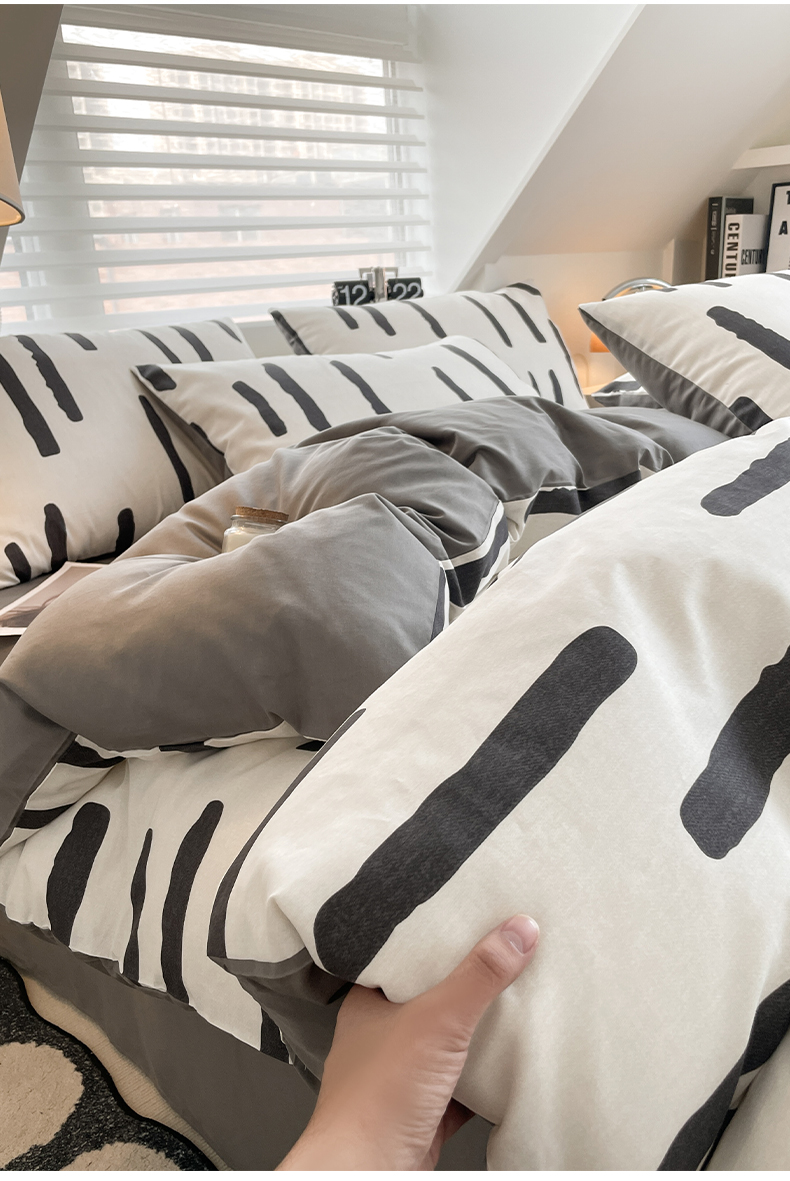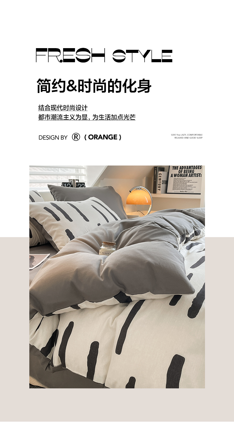 商品名称:雅居纺家纺 2025新款全棉条格简约系四件套 摩卡