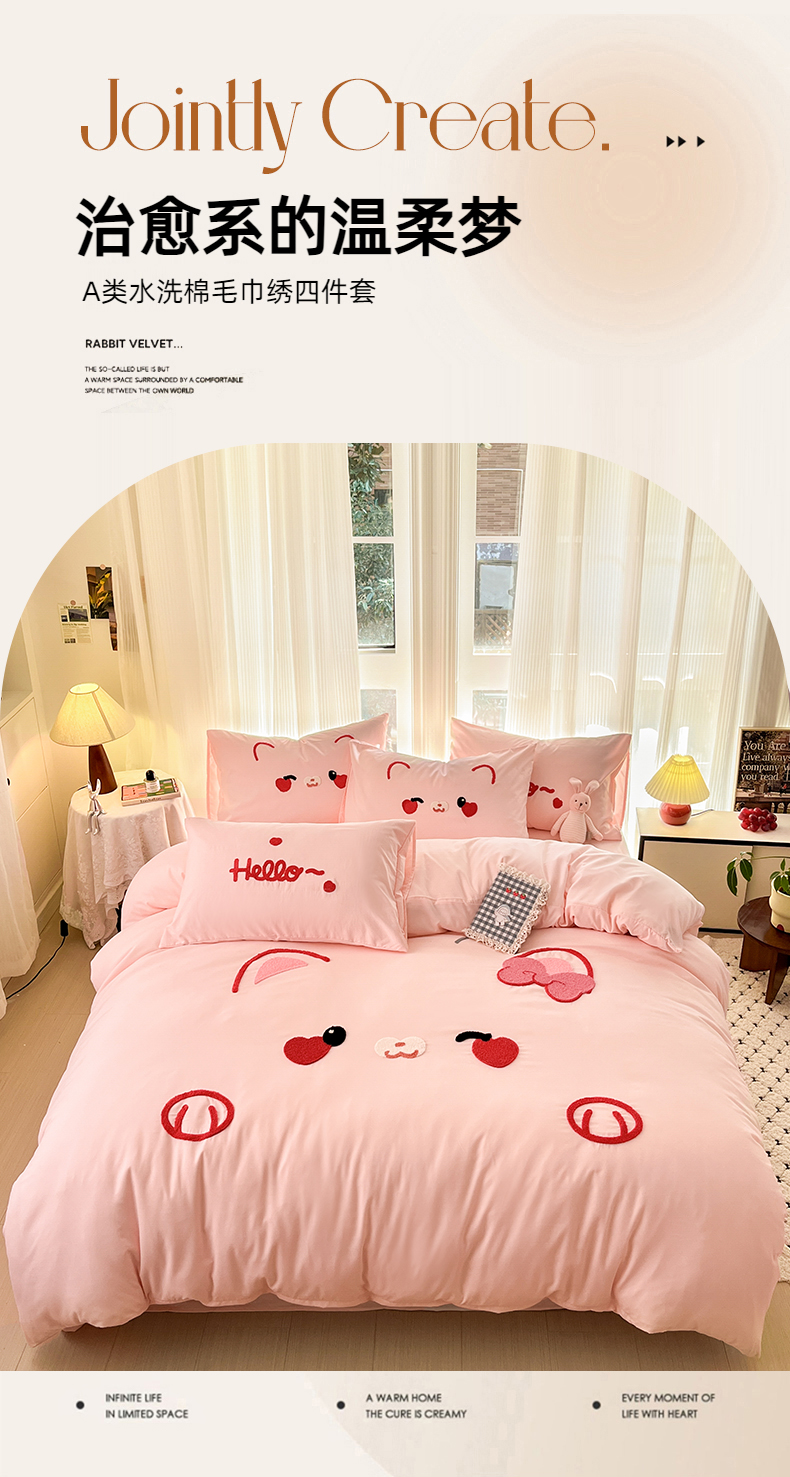 当前位置: 91家纺网 > 商品网购 > 床品套件 > 四件套 > 化纤普通四件套 > 玉海棠 2025新款水洗棉毛巾绣四件套系列(含买家秀) 凯蒂猫粉