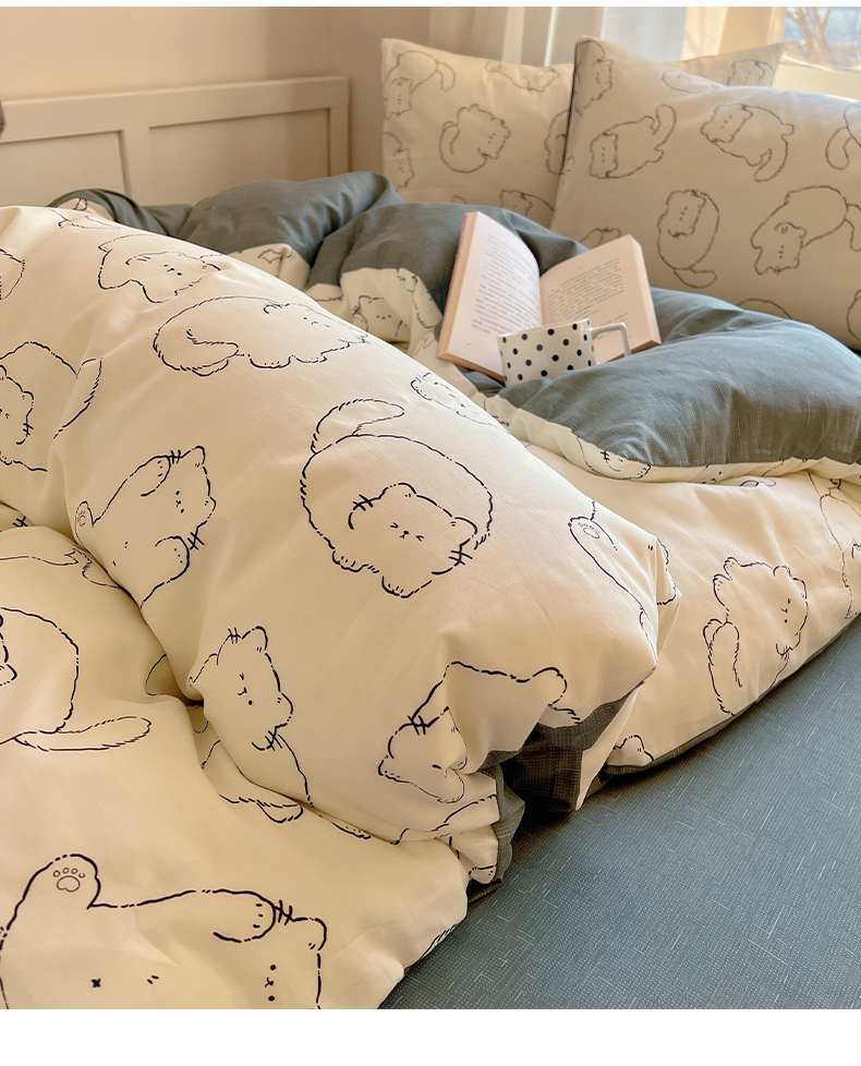 雅居纺家纺 2025新款全棉小清新四件套 猫猫汇