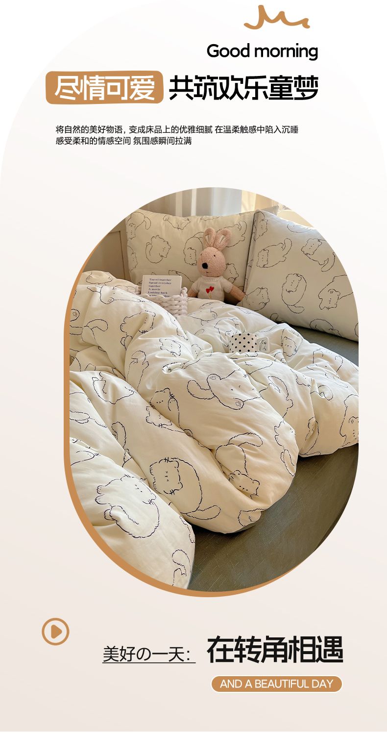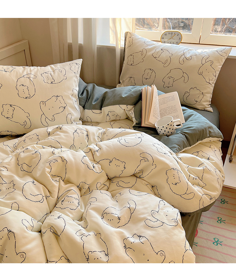 (总)雅居纺家纺 2026新款全棉小清新印花四件套,HI小狗,暴富,草莓蓝花,粉色熊熊,红红火火,简笔画小兔,蓝条花朵兔,绿色小兔,森林乐园,绅士快乐狗,贪睡猫猫,贪玩家族,贪玩小兔兔,祥瑞,小黑猫咪,幸福花朵,幸福兔-蓝,熊熊小汽车,紫色千鸟格