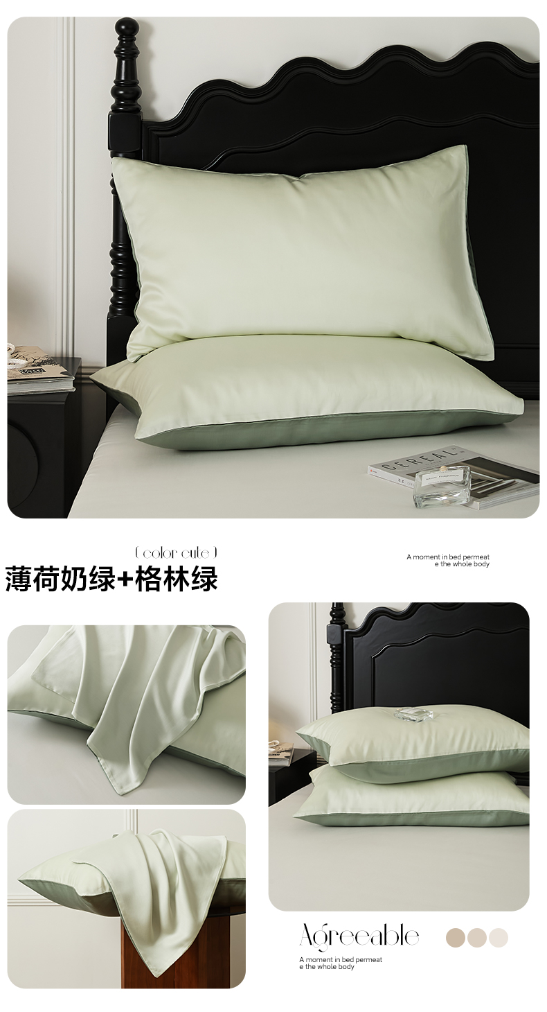 商品名称:EH家居 2025春夏天丝纯色单枕套 薄荷奶绿+格林绿