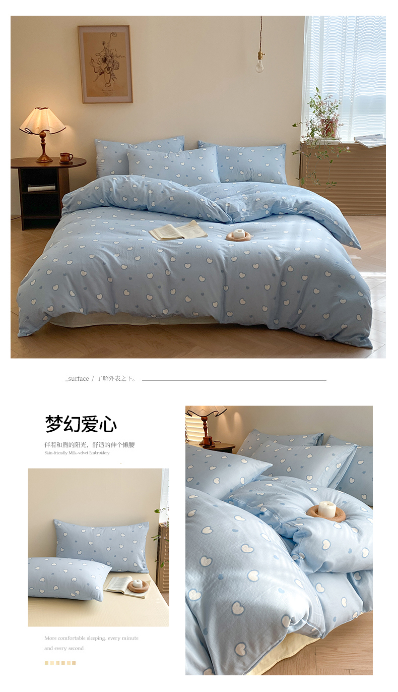 当前位置: 91家纺网 > 商品网购 > 床品套件 > 四件套 > 全棉普通四件套 > 2025新款A类母婴级有氧全棉纯棉双层纱纯棉印花四件套 场景一 梦幻爱心