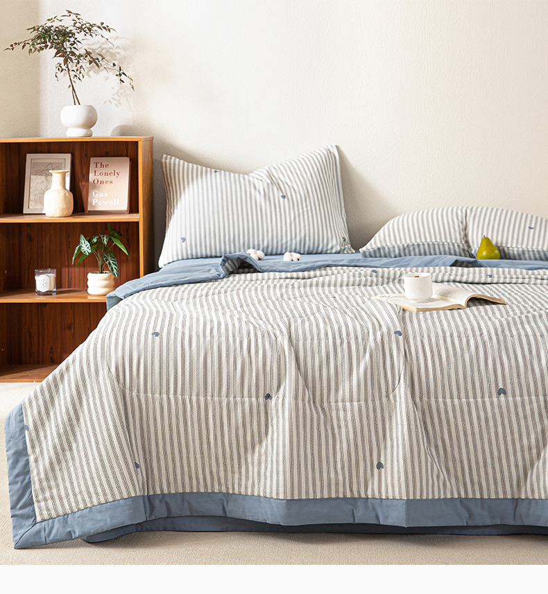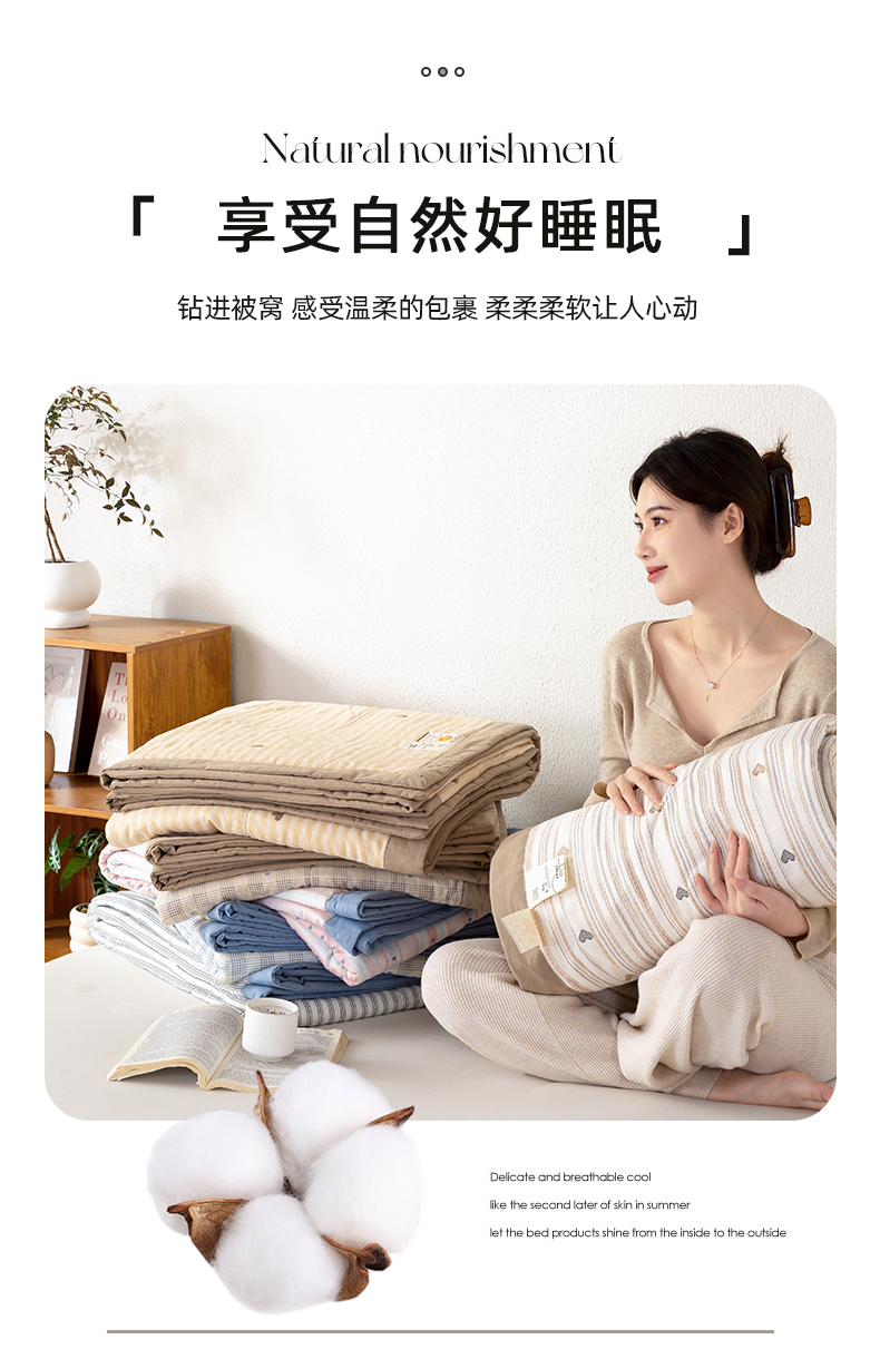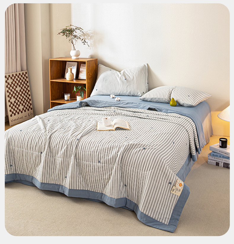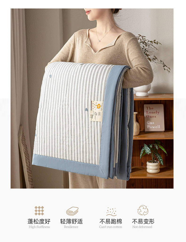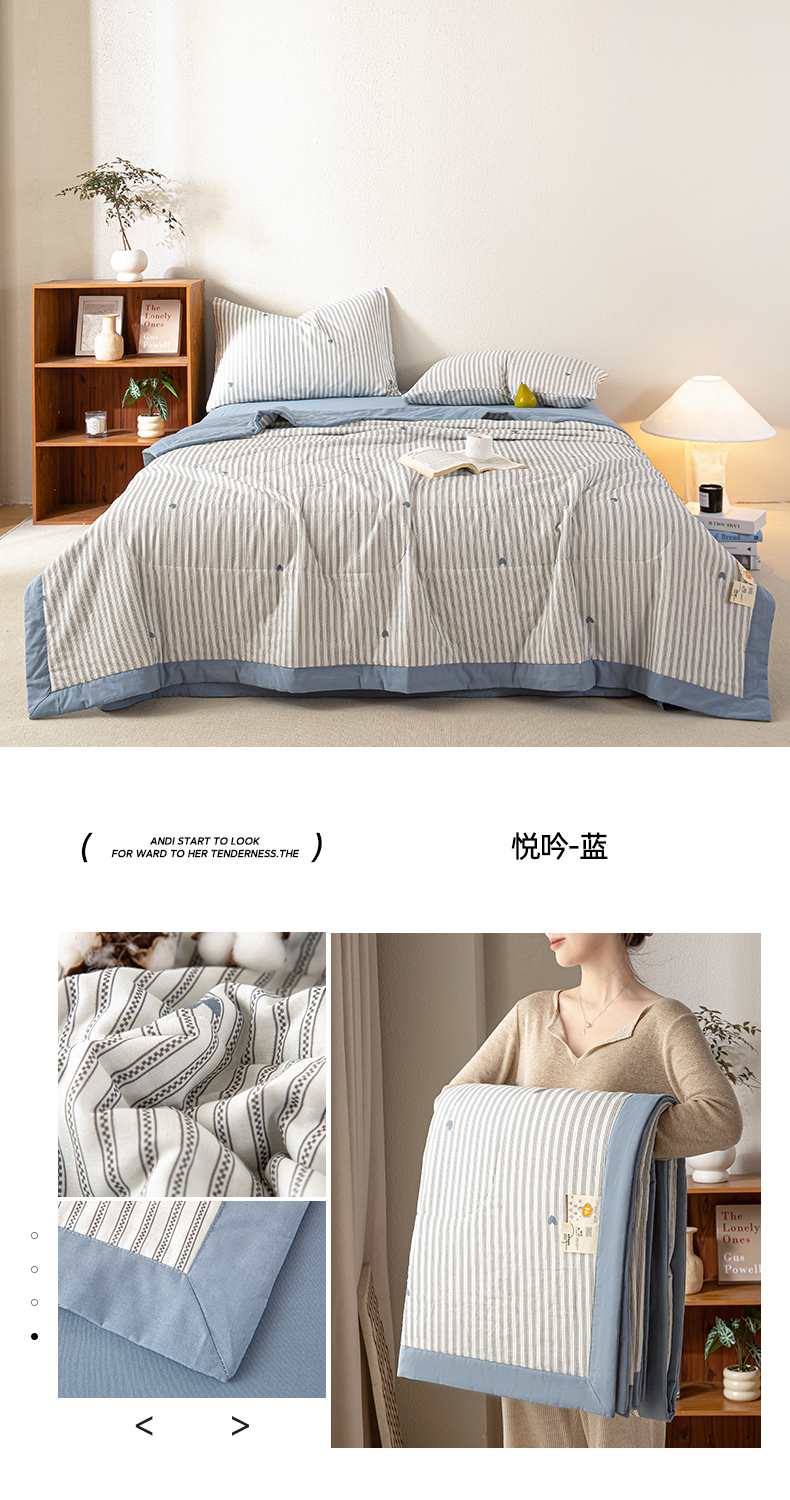 • 91家纺网 家纺一手货源 找家纺 2025新款全棉双层纱棉花被夏凉被纯棉夏被被子被芯 悦吟-蓝