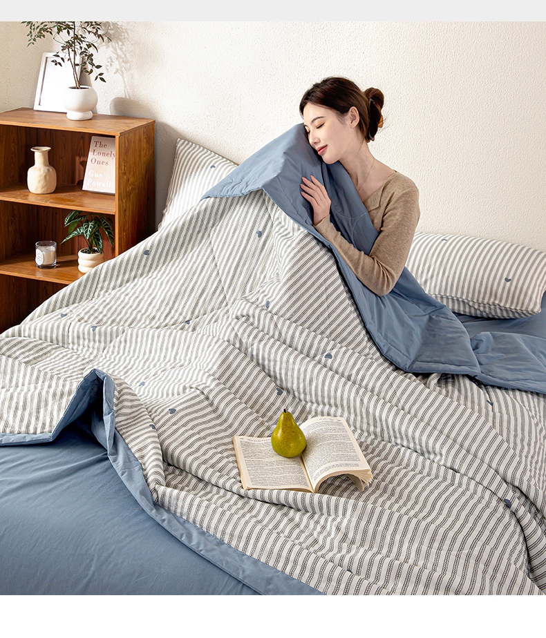 2025新款全棉双层纱棉花被夏凉被纯棉夏被被子被芯 悦吟-蓝