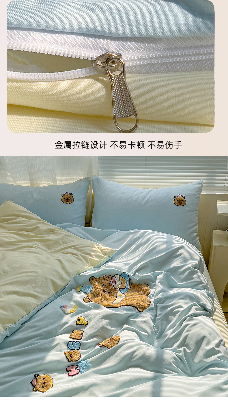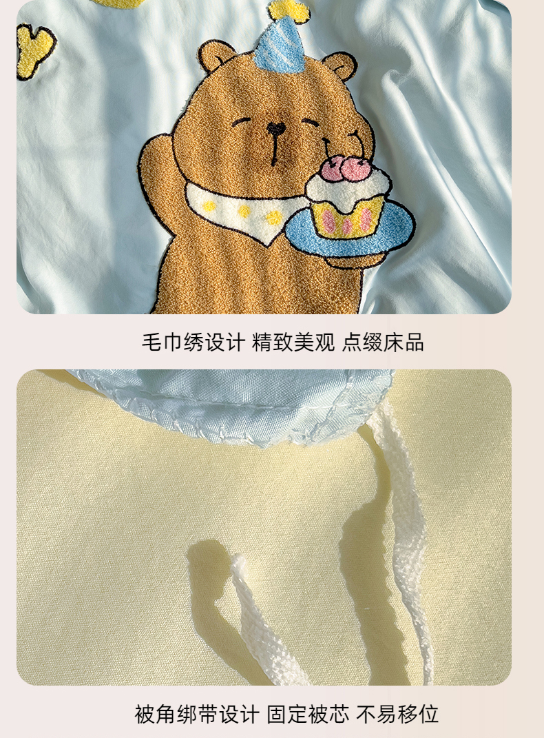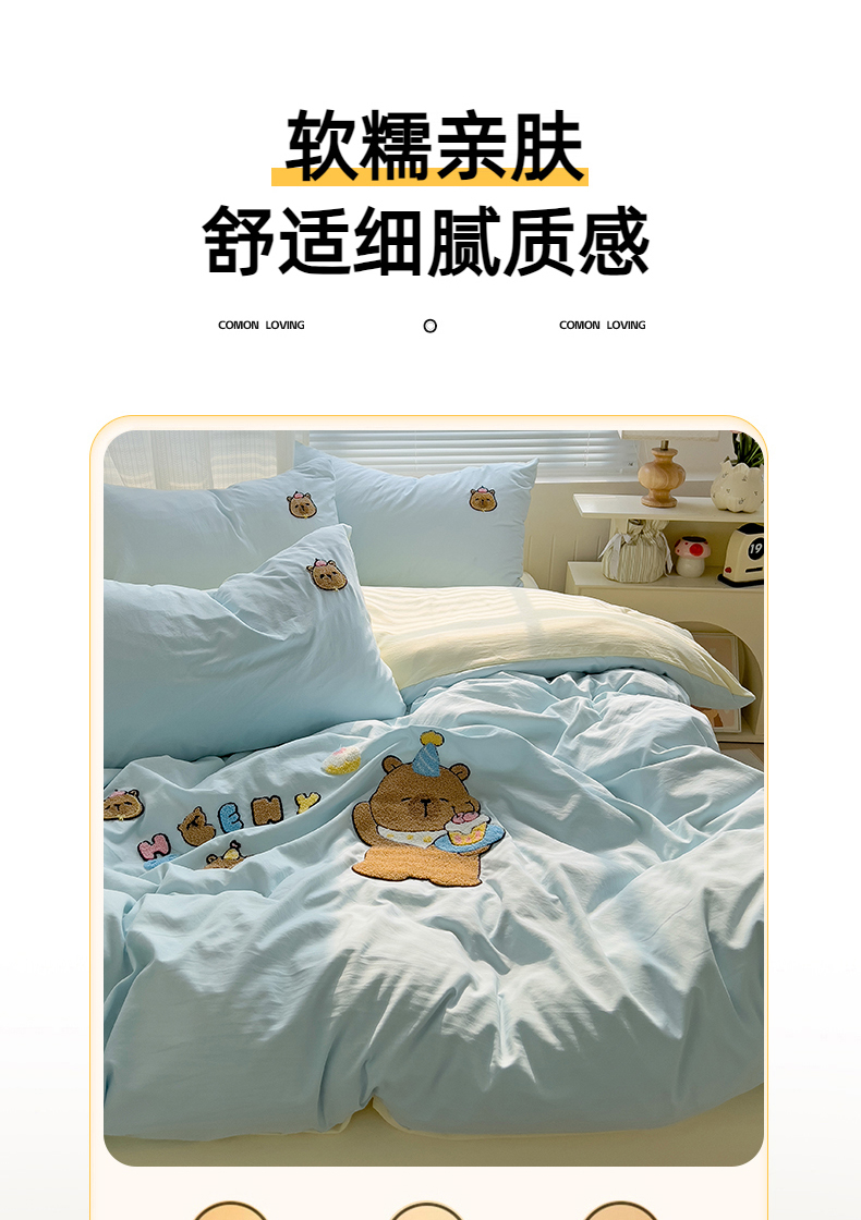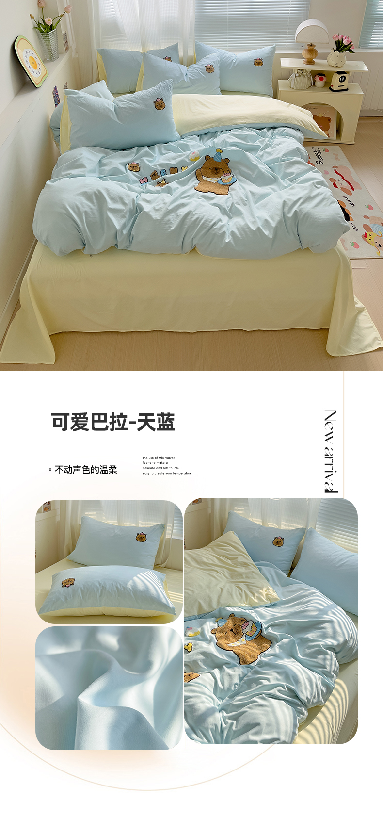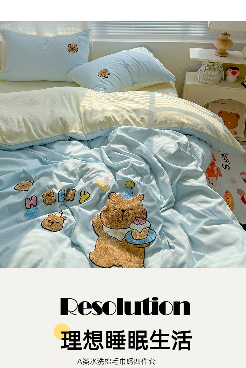 当前位置: 91家纺网 > 商品网购 > 床品套件 > 四件套 > 凯洛奇 2025新款1水洗棉毛巾绣四件套系列【提供买家秀】 可爱巴拉-天蓝