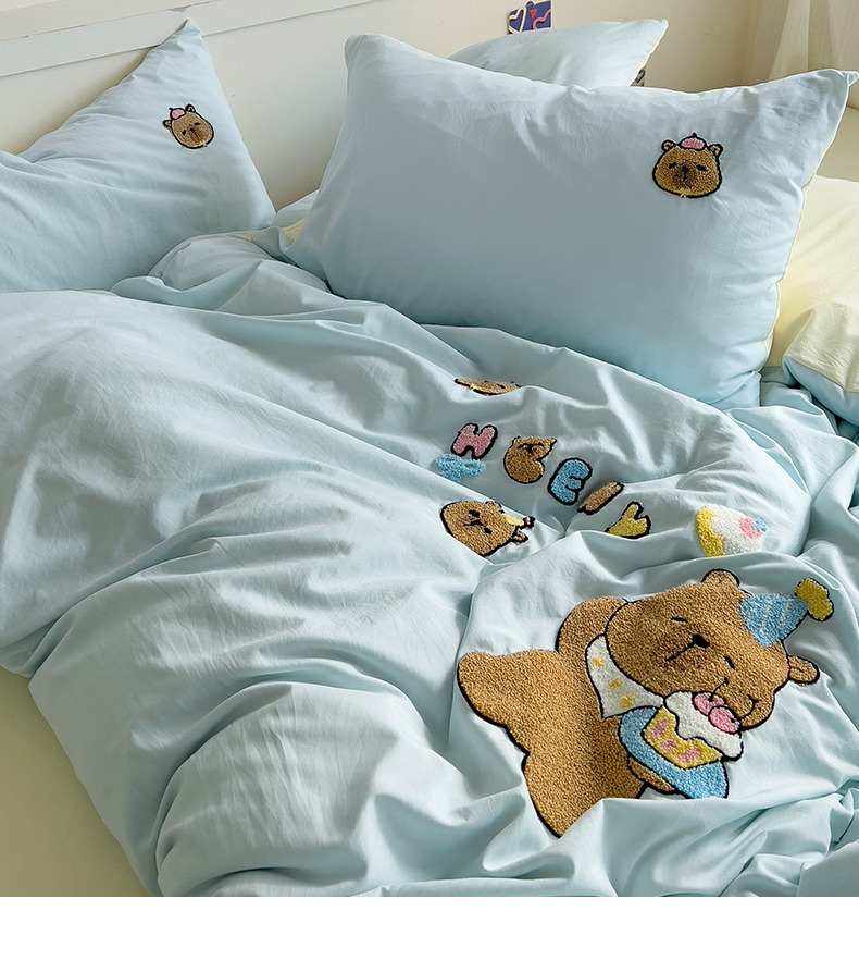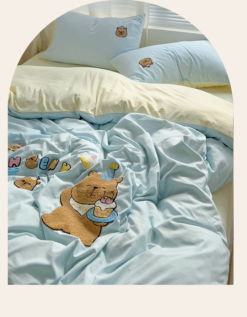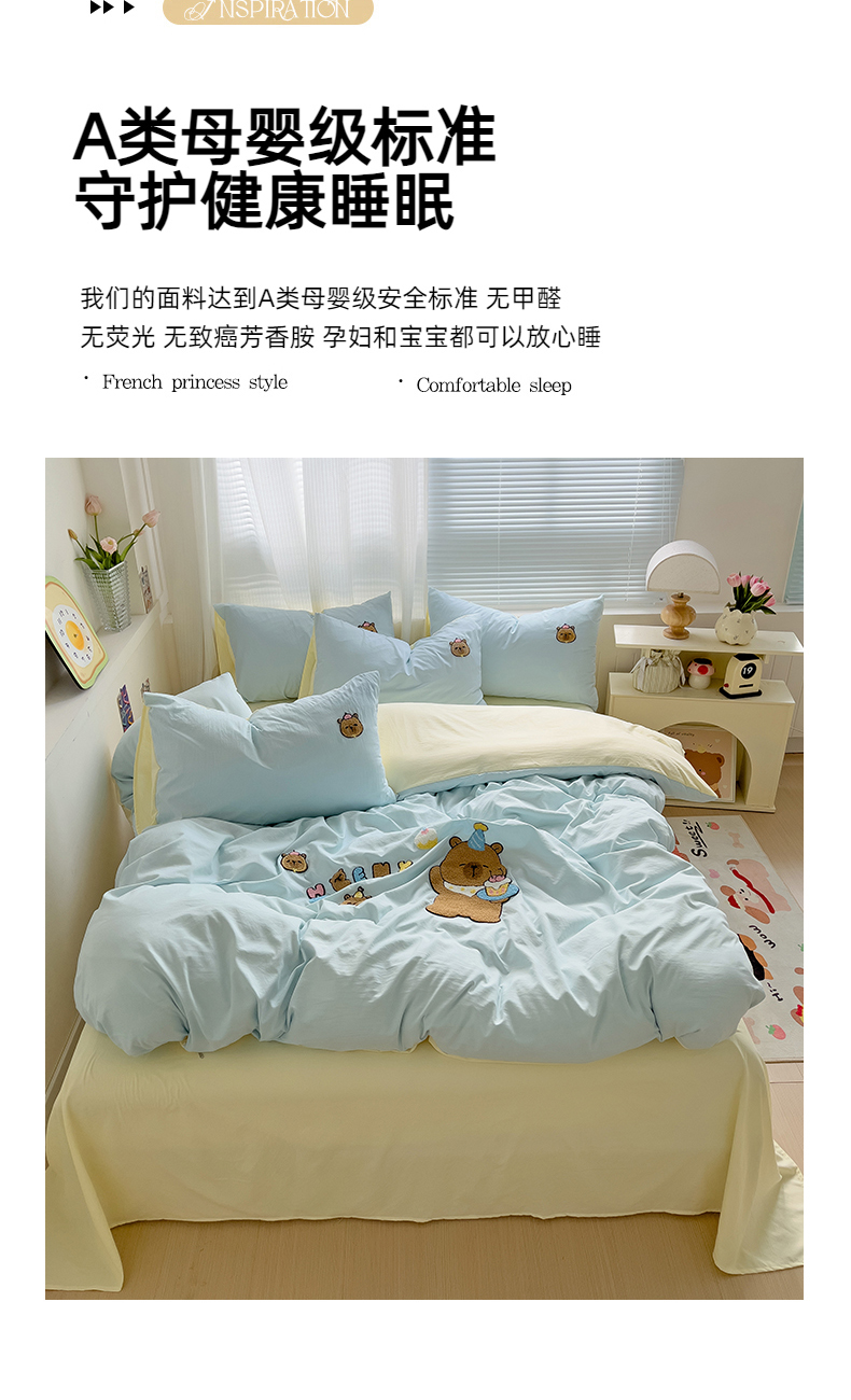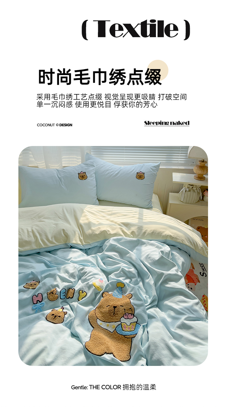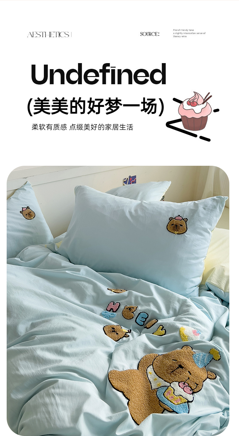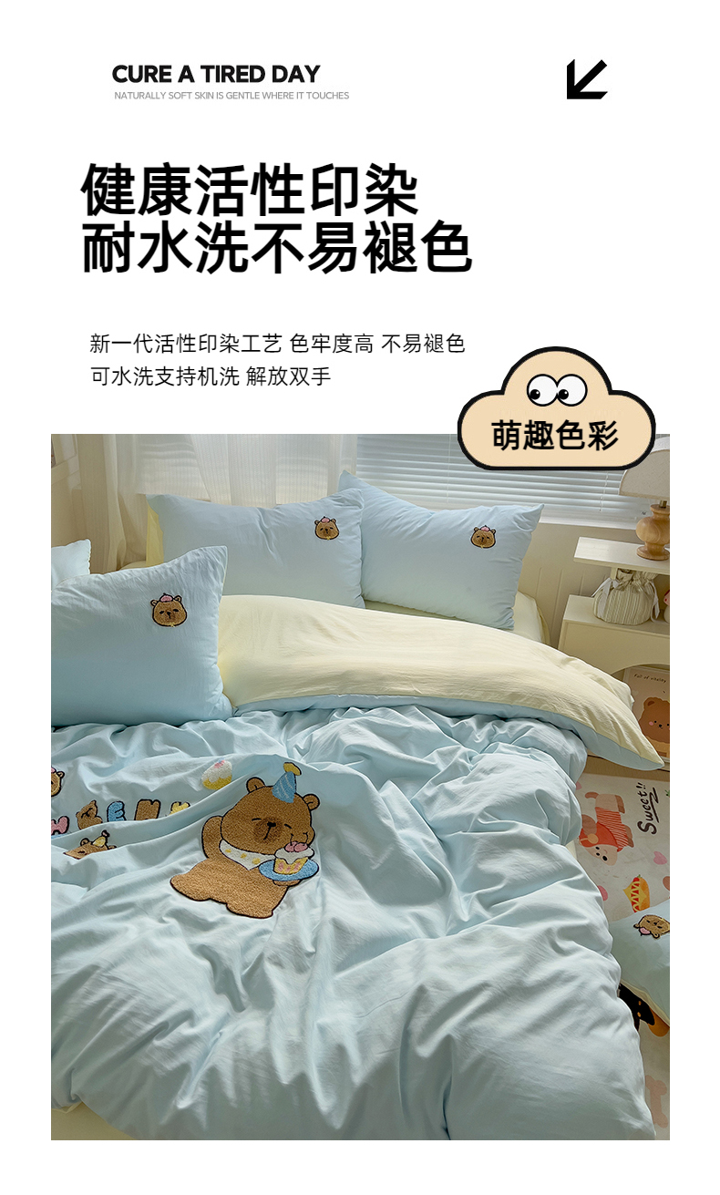 当前位置: 91家纺网 > 商品网购 > 床品套件 > 四件套 > 凯洛奇 2025新款1水洗棉毛巾绣四件套系列【提供买家秀】 可爱巴拉-天蓝