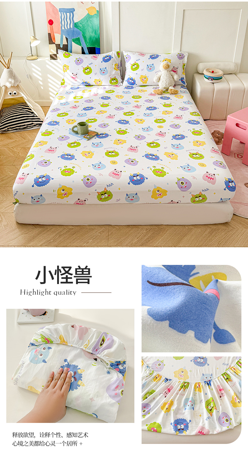 • 91家纺网 家纺一手货源 找家纺 温眠 2025新款A类亲肤水洗棉可爱卡通印花床笠 小怪兽