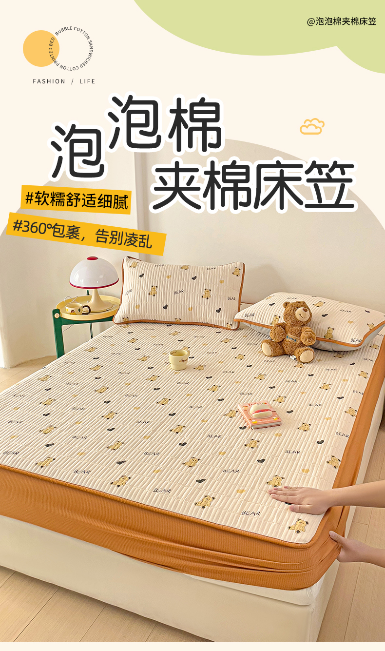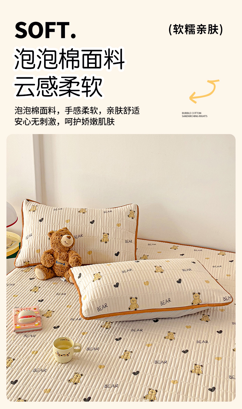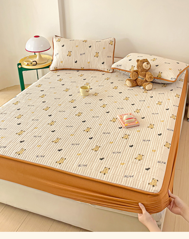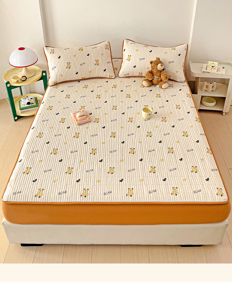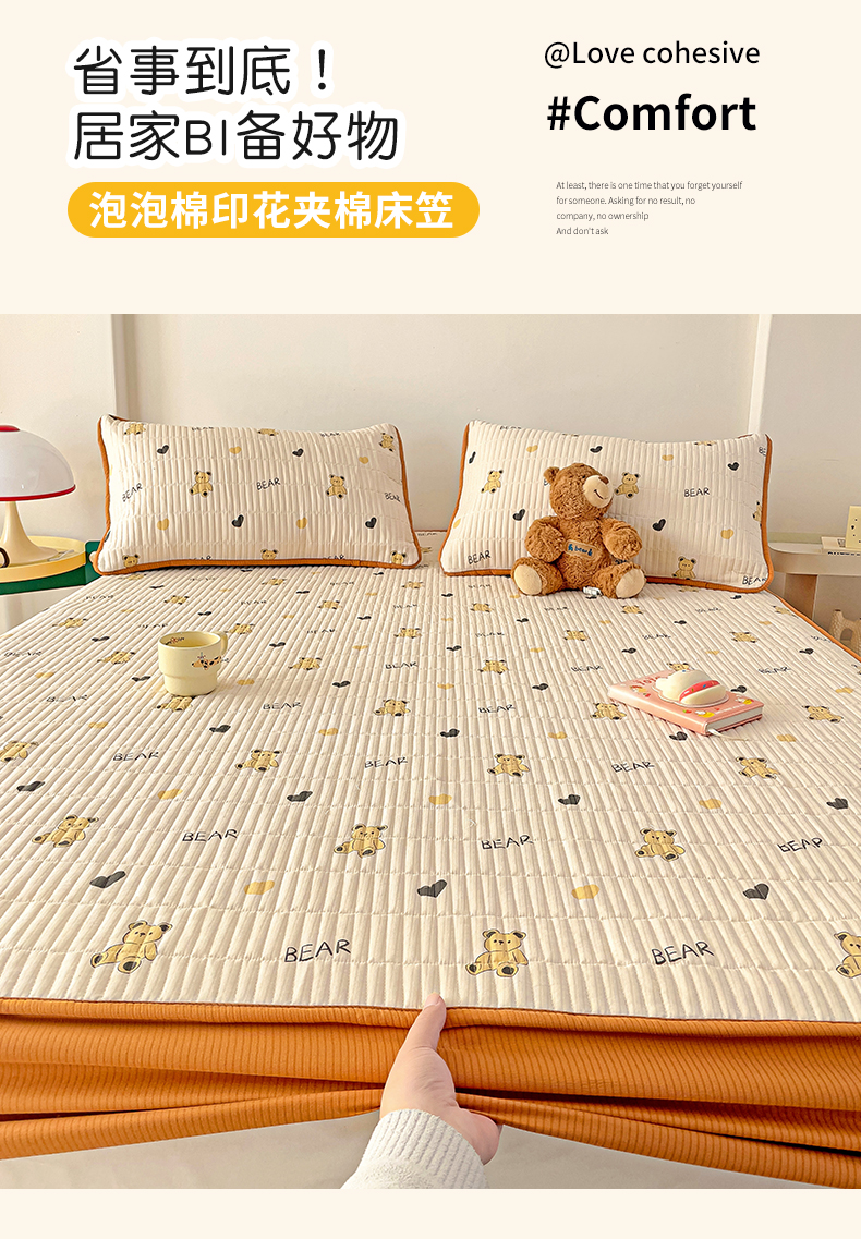 恬澳家纺 2025新款A类泡泡棉夹棉印花床笠 艾丽-熊宝