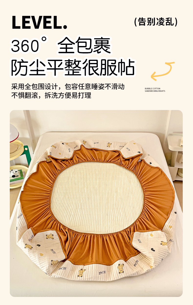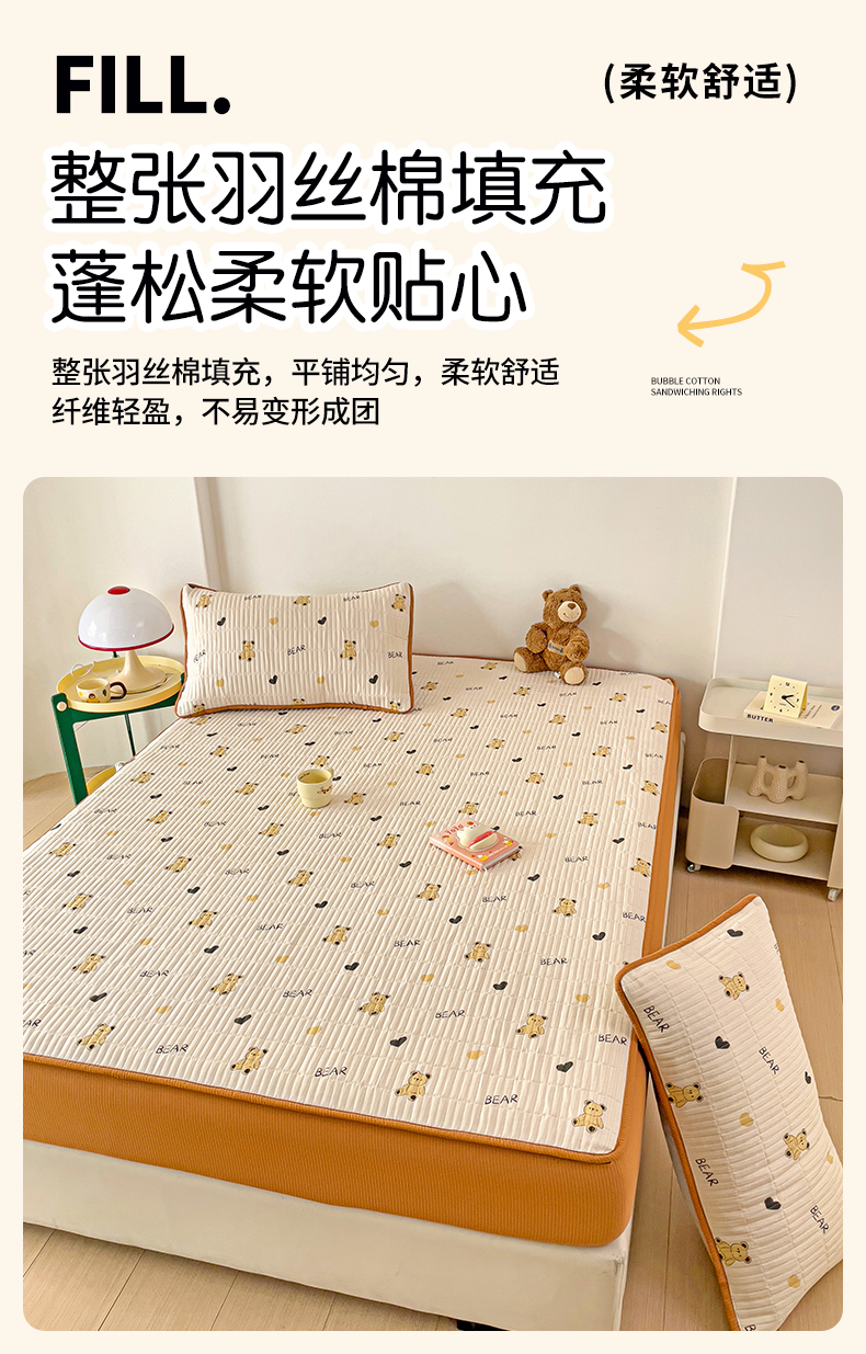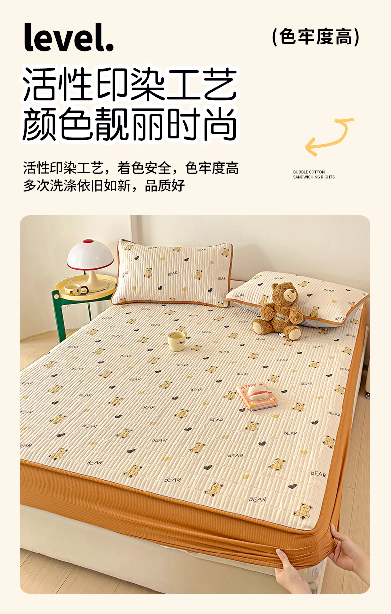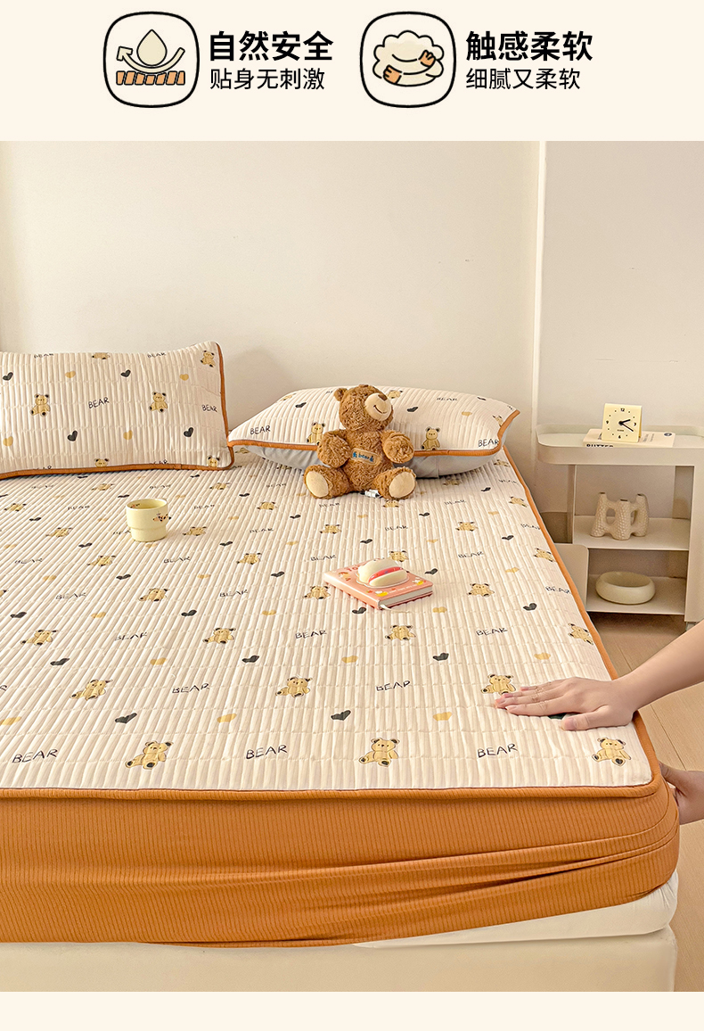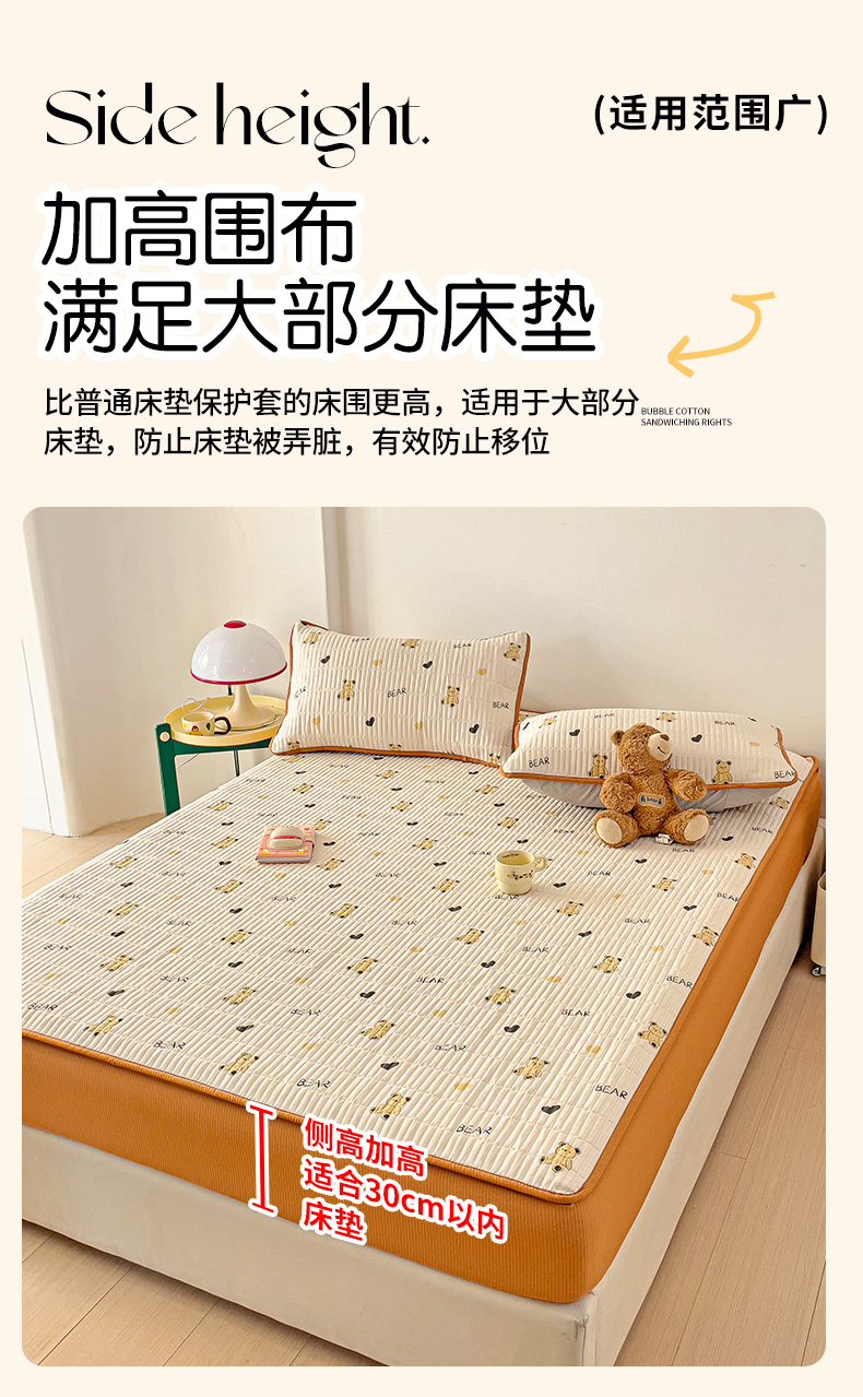 恬澳家纺 2025新款A类泡泡棉夹棉印花床笠 艾丽-熊宝