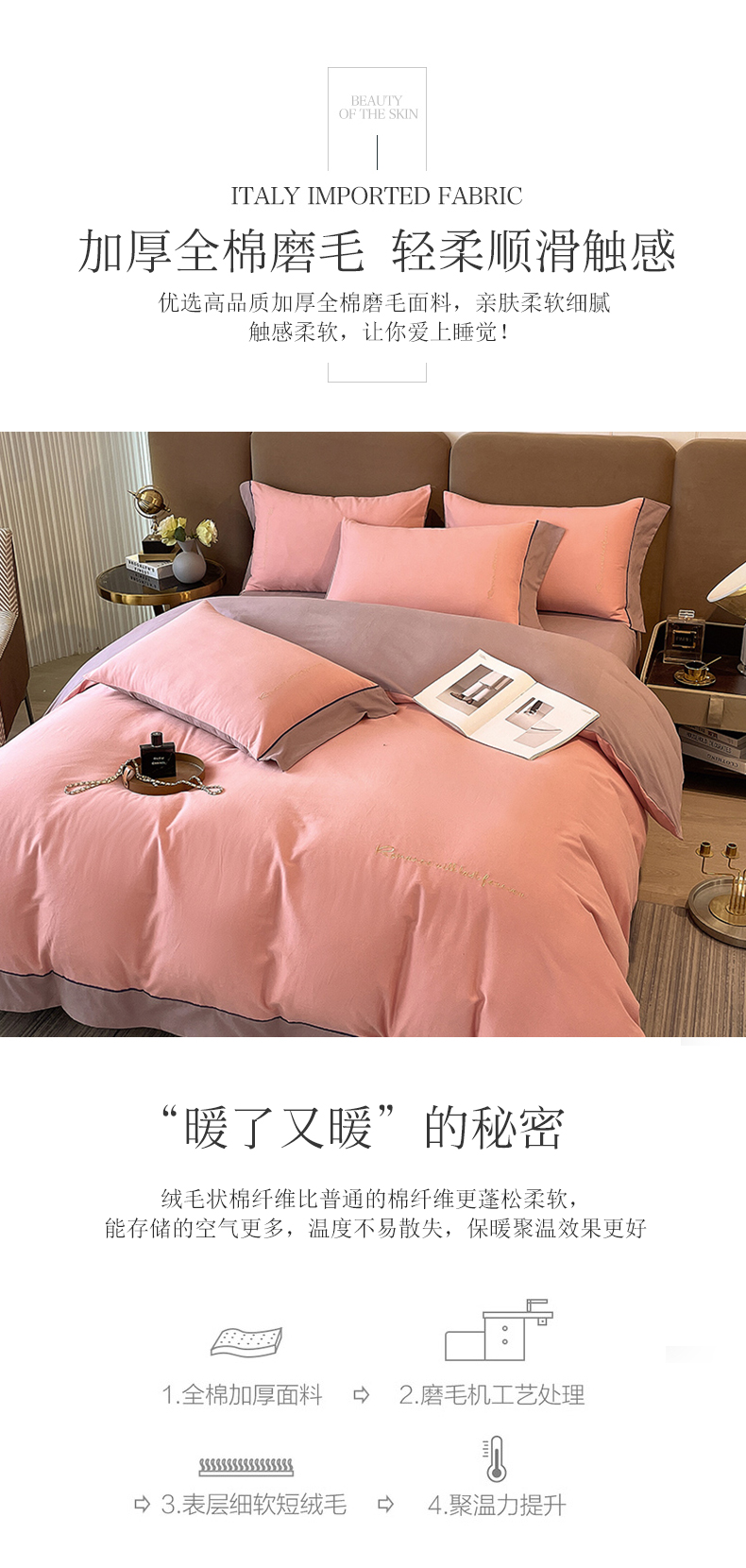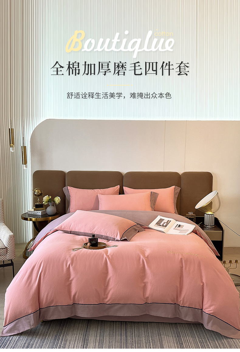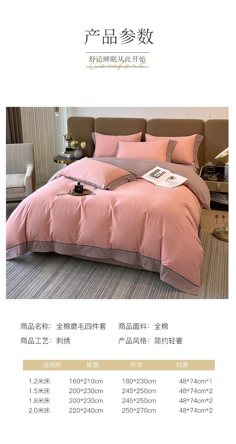 当前位置: 91家纺网 > 商品网购 > 床品套件 > 四件套 > 全棉普通四件套 > 买家秀 爆款花色不断货)A类母婴级纯棉磨毛四件套磨毛刺绣四件套纯棉四件套全棉磨毛四件套纯色双拼四件套 帛-藕粉色