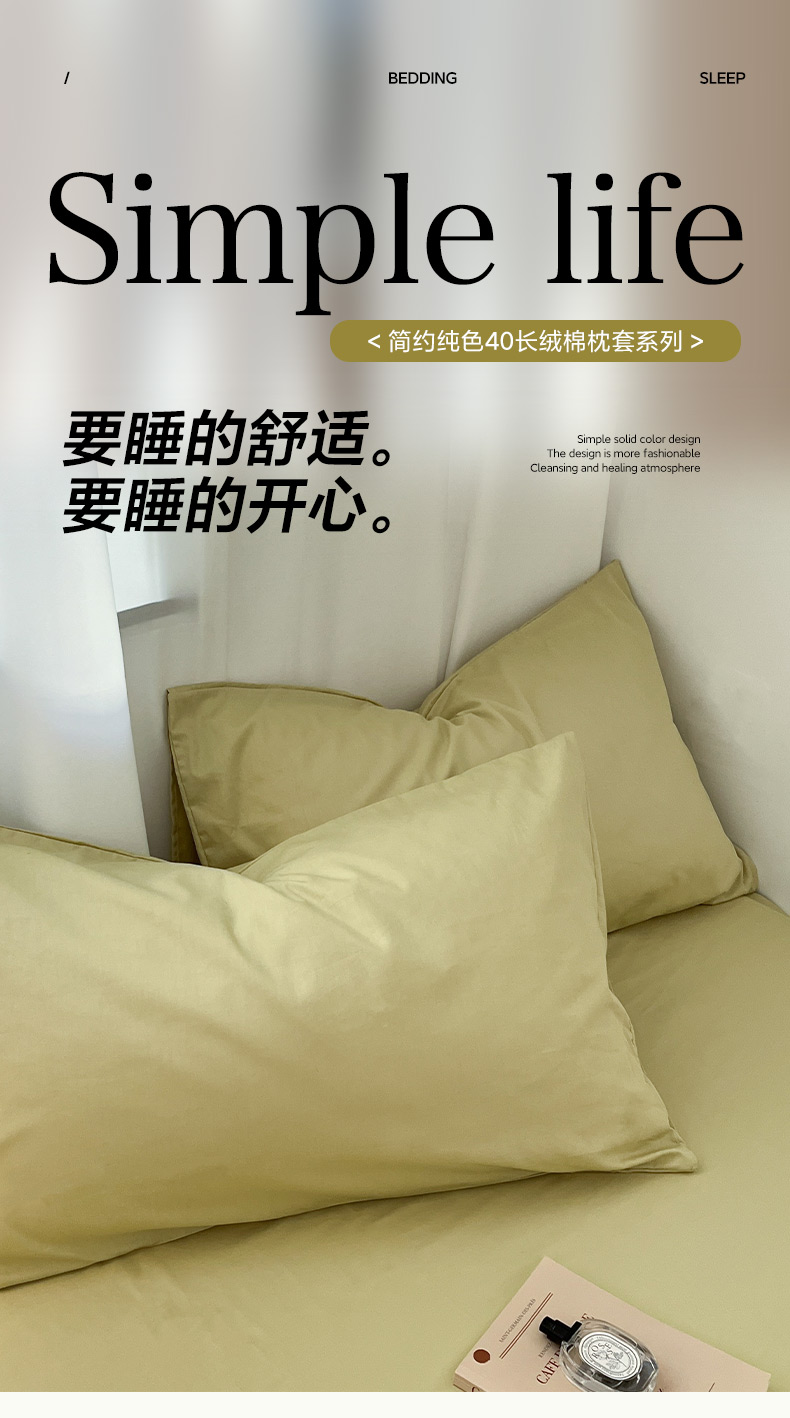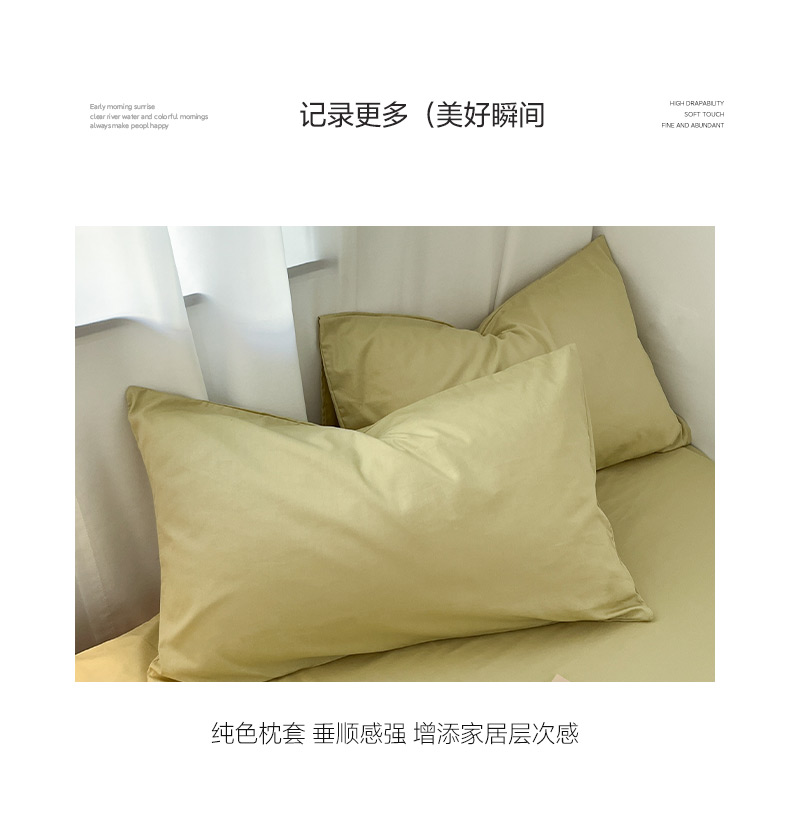 商品名称:2025新款40长绒棉ins美拉德色系纯色全棉单品四件套床笠四件套系列--单枕套 抹茶色