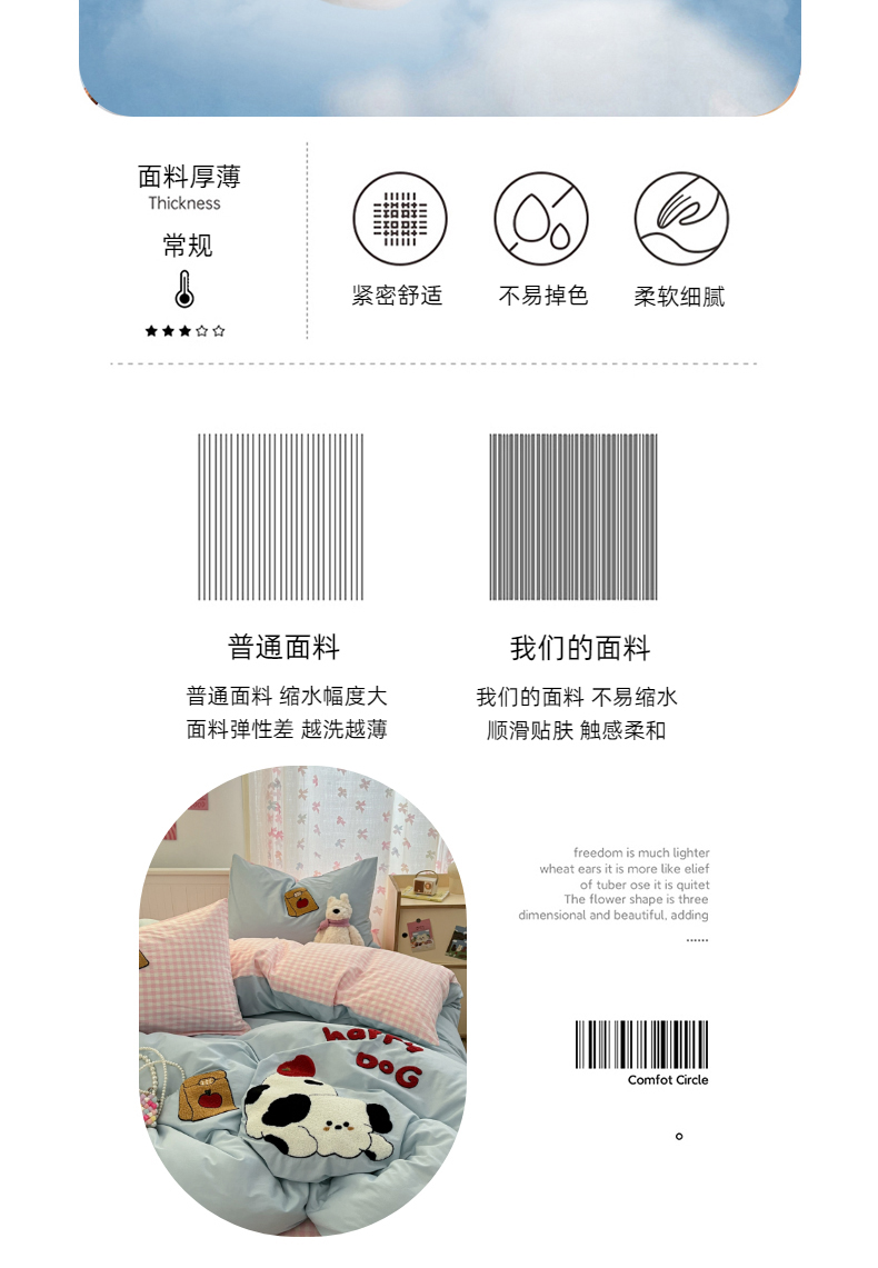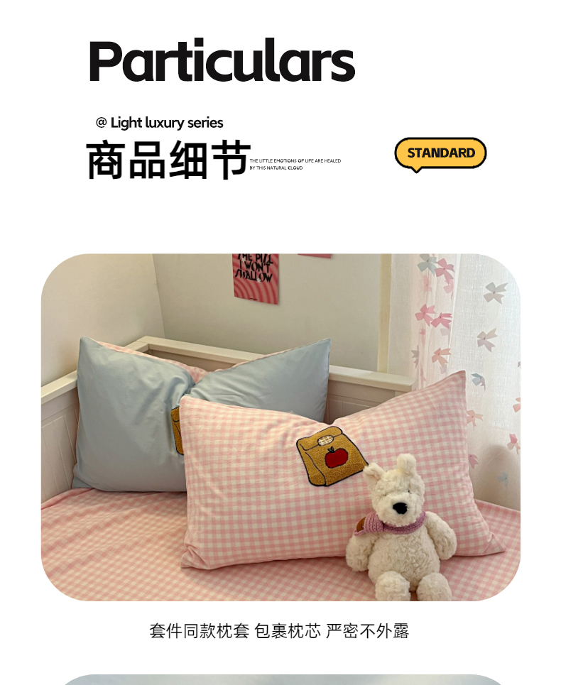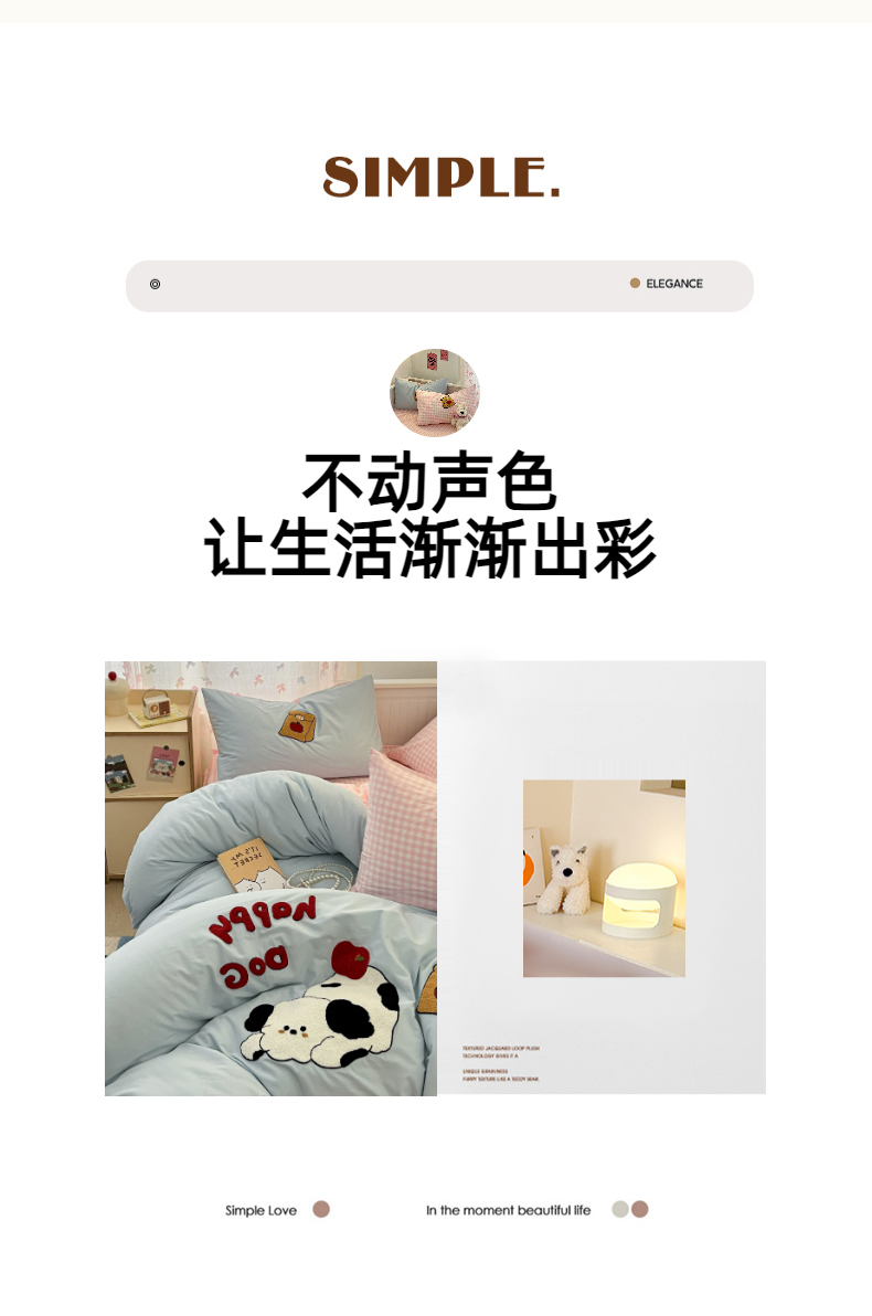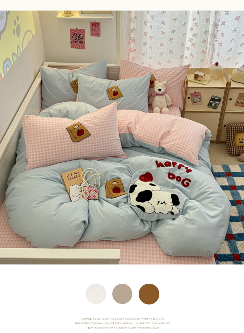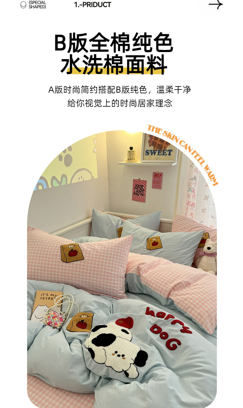 商品名称:呗旺鹿 2025新款A类全棉色织水洗棉毛巾绣系列四件套 苹果小狗