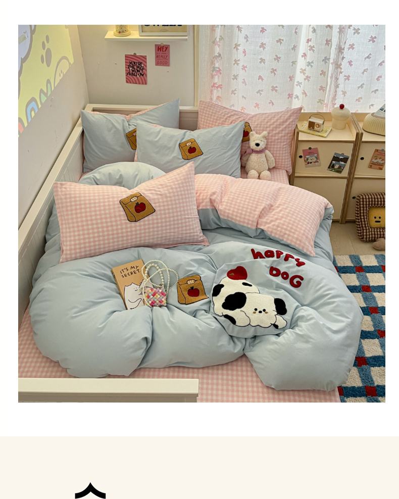 (总)呗旺鹿 2026新款全棉纯棉40支13070卡通印花四件套-场景二,萌星,鼻涕狗,果子象,机灵猫,可爱星人,幸福小熊