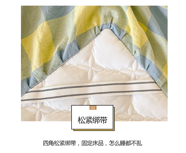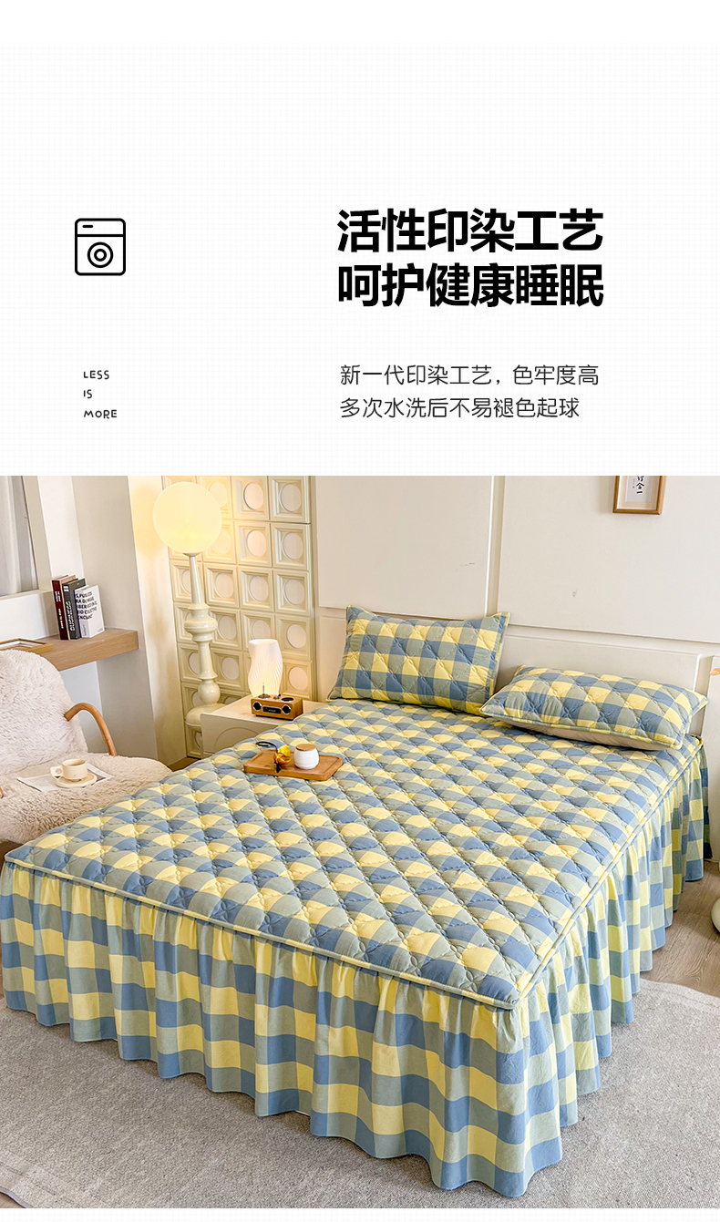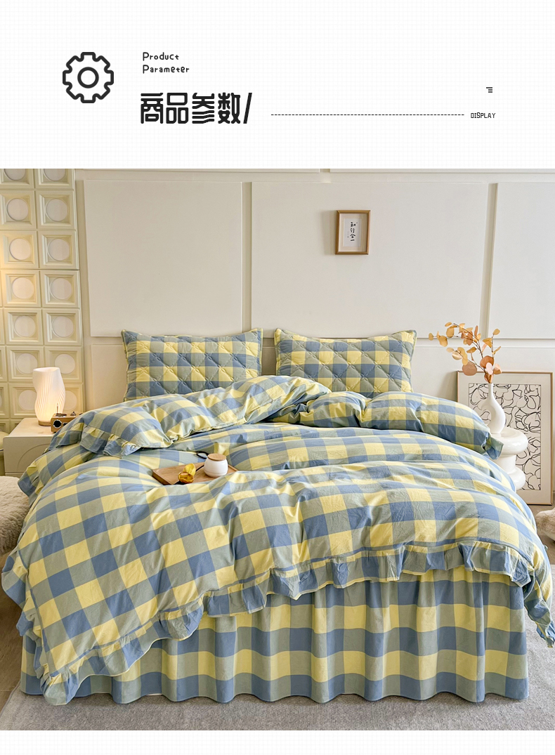 商品名称:糯米猪家纺 2025新款全棉色织水洗棉床裙 兰黄大格