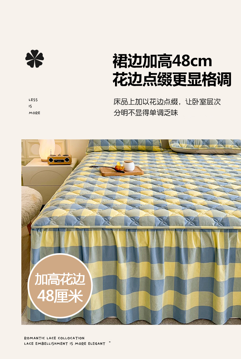 (总)糯米猪家纺 2025新款全棉色织水洗棉床裙,格纹 灰,简兮 兰,兰黄大格,晴空 灰,时尚 灰,雅致 兰