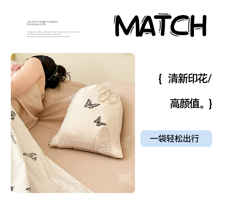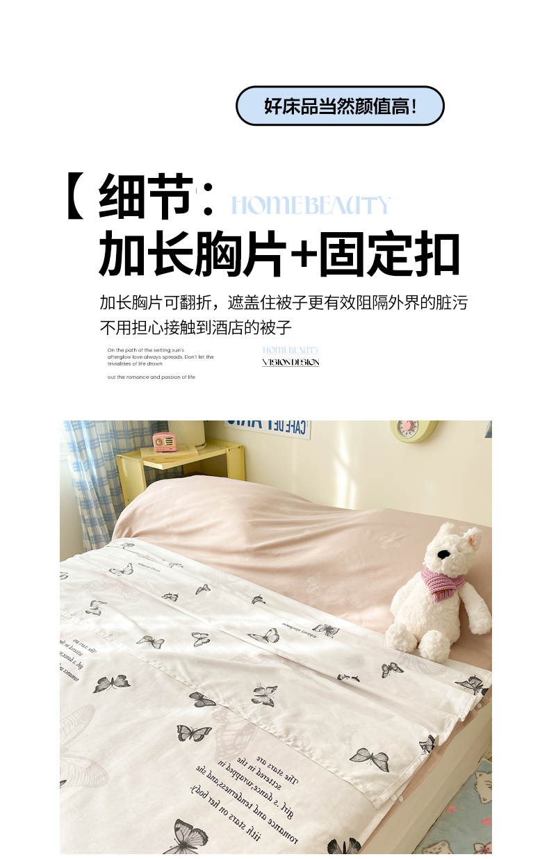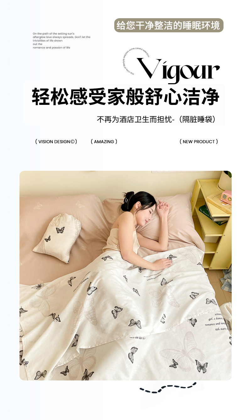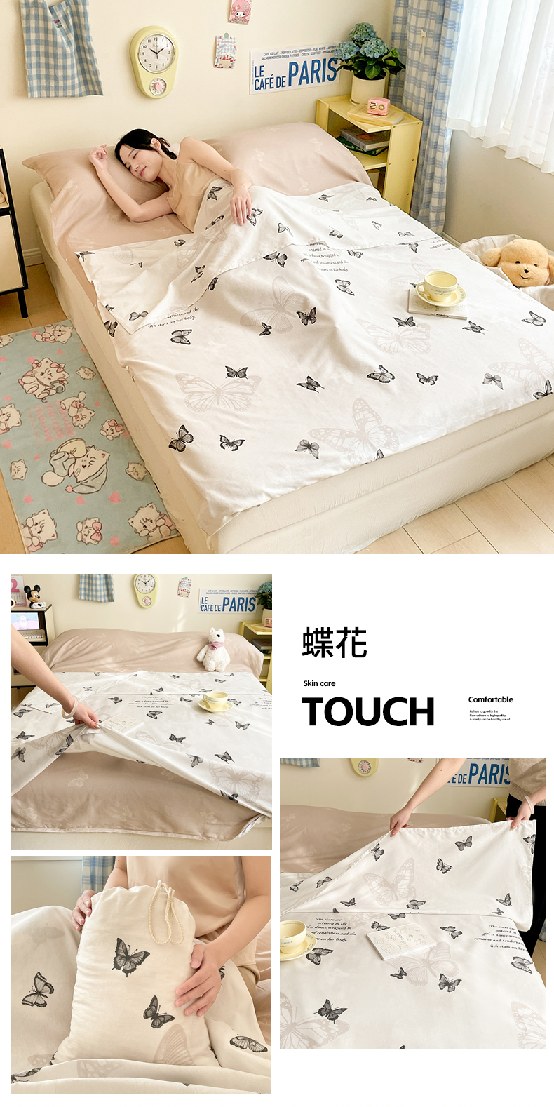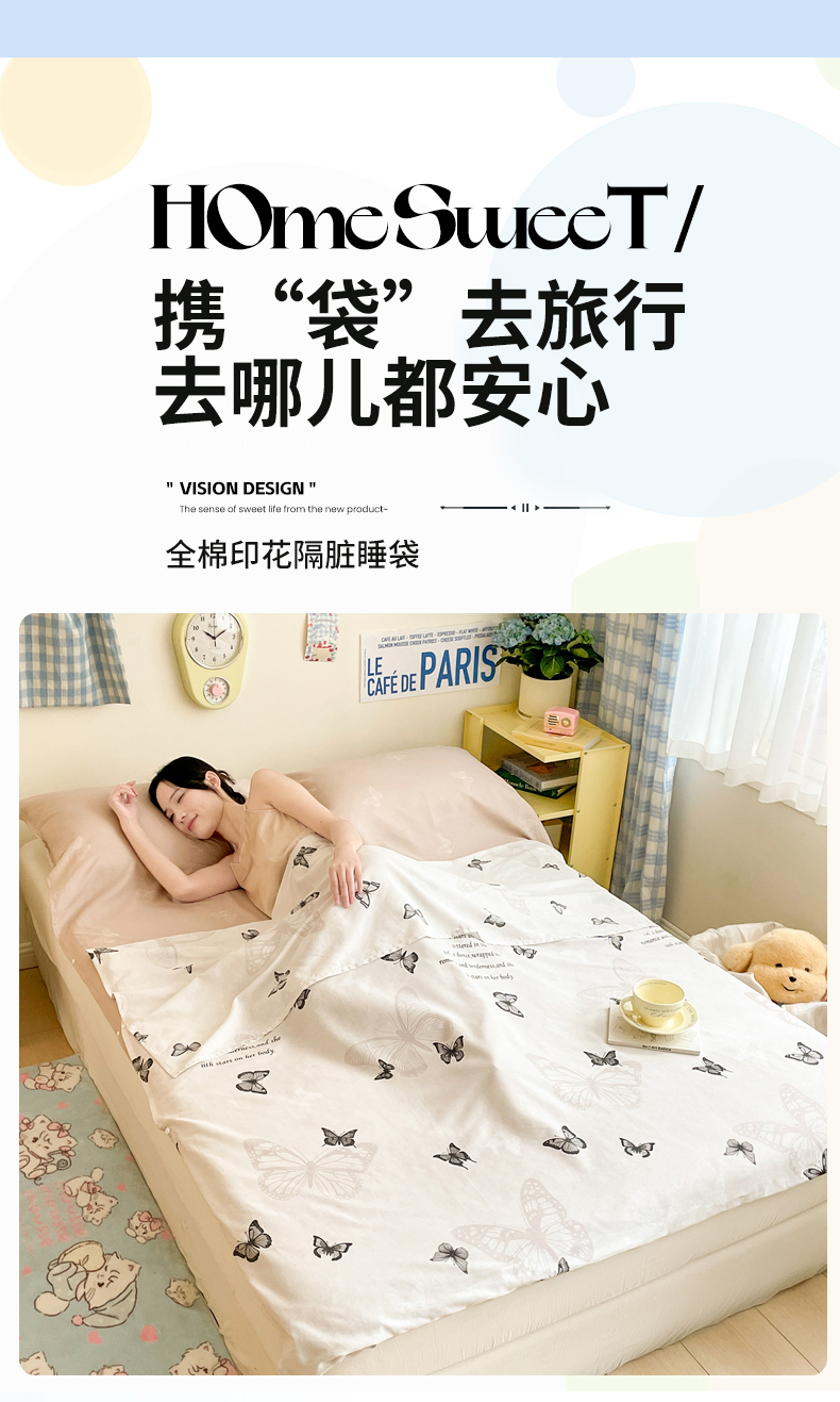 商品名称:Sweet dreams甜梦 2025新款全棉小清新卡通一体式旅行酒店睡袋 蝶花