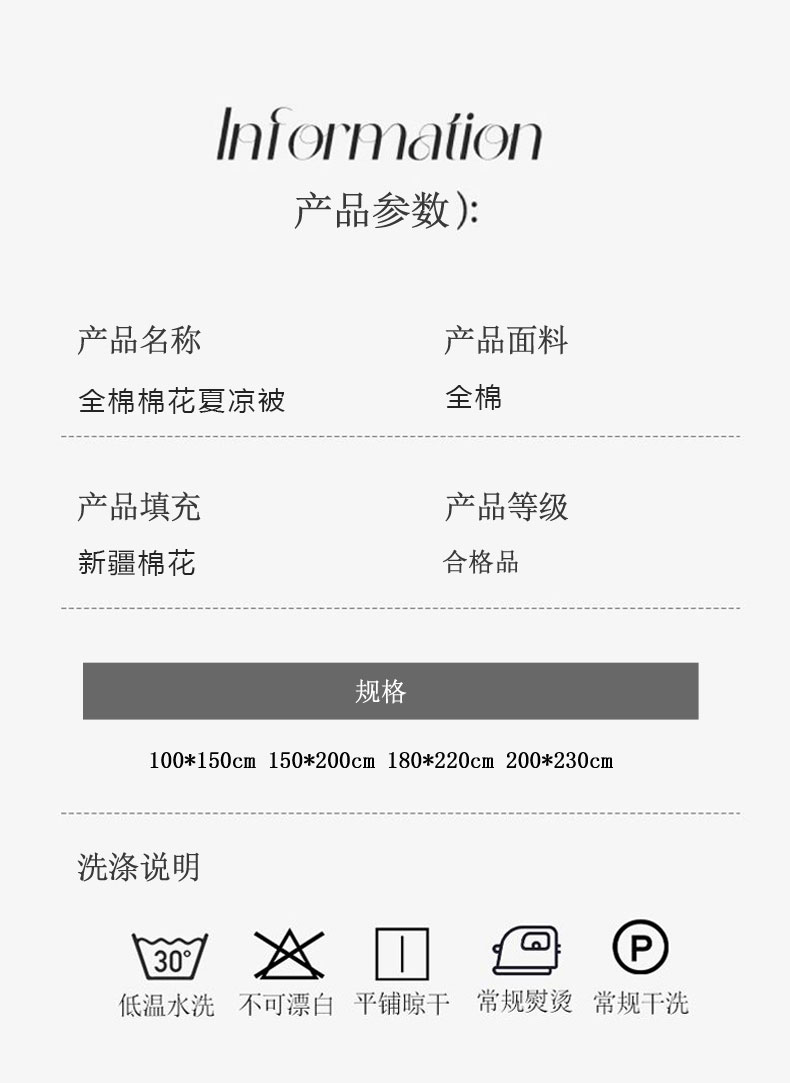 150*200cm夏被四件套 | ¥96.00 |
