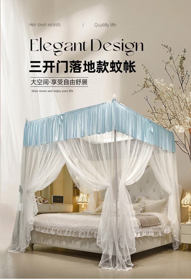 当前位置: 91家纺网 > 商品网购 > 床上用品 > 蚊帐 > 宫廷蚊帐 > 海虹蚊帐 2025新款2505款一体防尘顶落地宫廷蚊帐 简约蓝