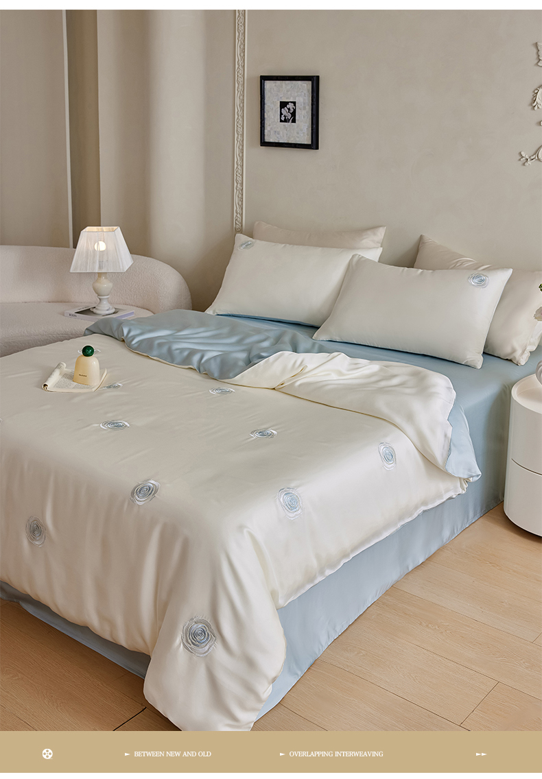 当前位置: 91家纺网 > 商品网购 > 床品套件 > 四件套 > 莱赛尔四件套 > 简纯主义 2025新款邂逅山茶天丝四件套 邂逅山茶-蓝