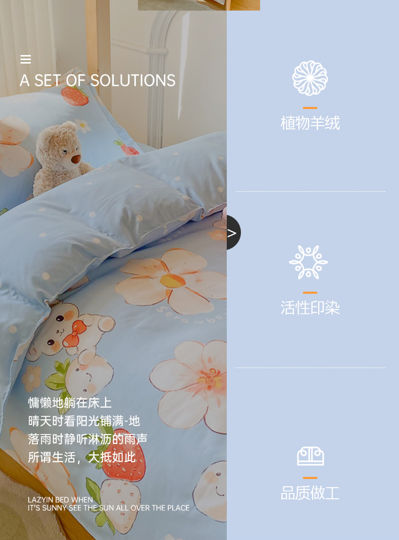 羽丝绒被六件套(三件套+ 羽丝绒被芯7斤+0.9床垫 3斤+枕芯) | ¥96.00 |